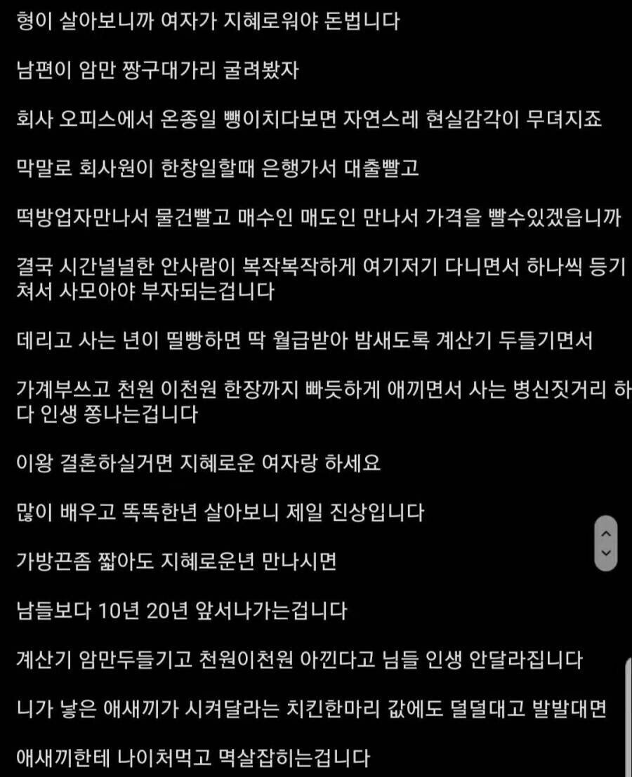 근데 저렇게 아끼면서 살거면 결혼 왜하나 싶기도.. 내 입장에선 너무 불행할것 같음..