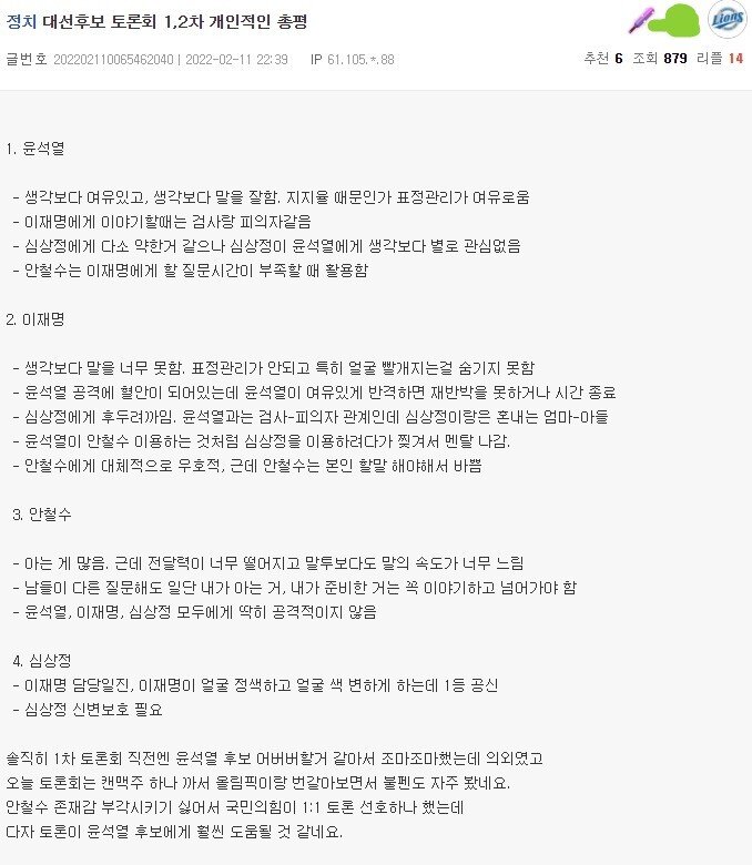 cxbar// 나도 토론을 직접 본건 아니라서 야갤 념글 통해서 토론 내용 보고 있거든