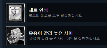 둘다 오래걸림 죽음이 갈라 놓은 사이도 안된거 보니 반정도? 친화도 거의 다 찍어야함