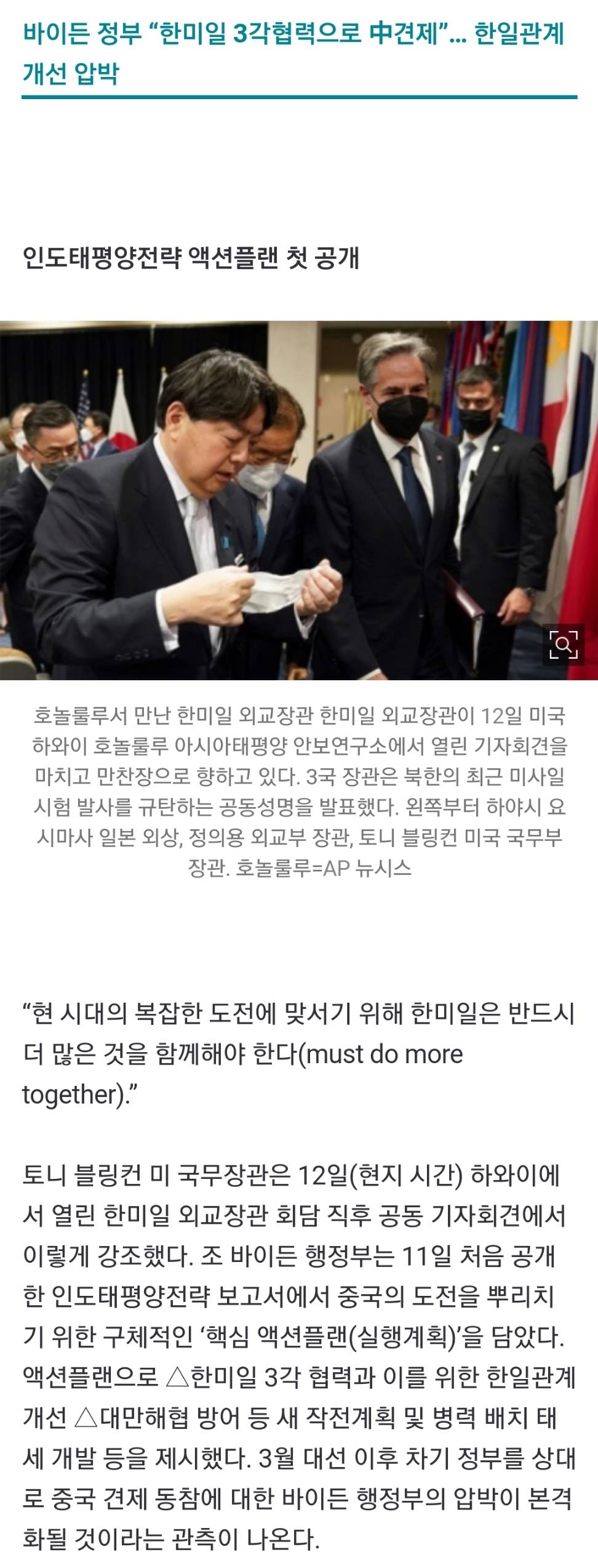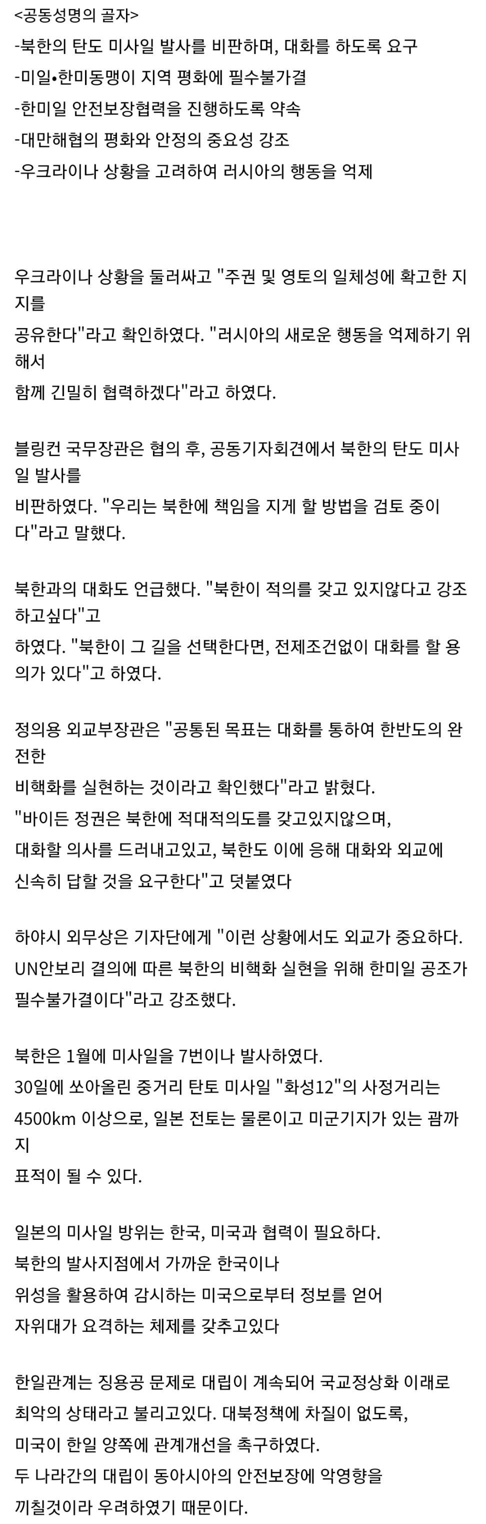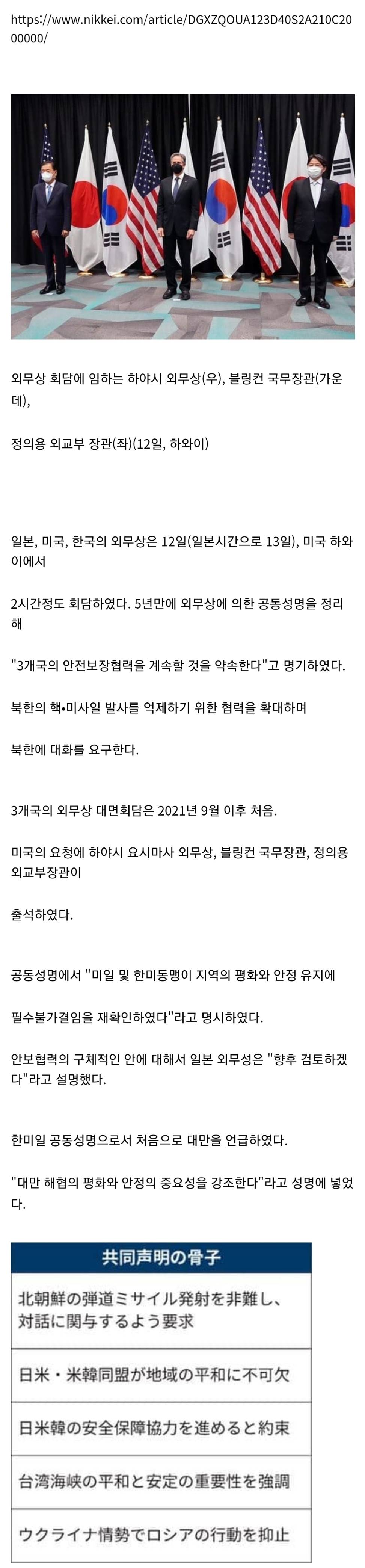 한미일 회담이 어제 하와이에서 있었음