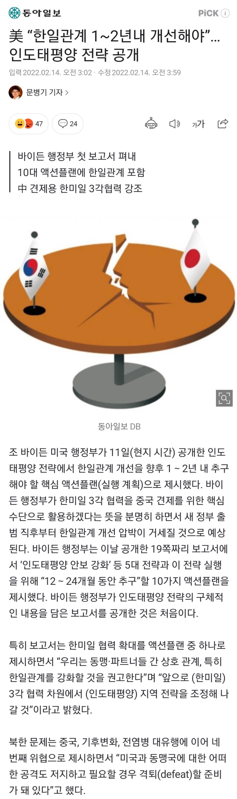 짱개를 견제하고 대만을 도우려면 한일이 중요한데