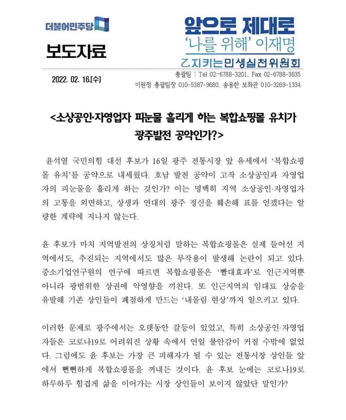 지역상인과 시민단체 그리고 당내의 반발에도 광주시는 위 사업의 진심이였음.