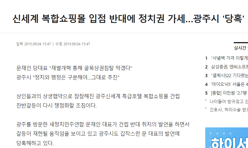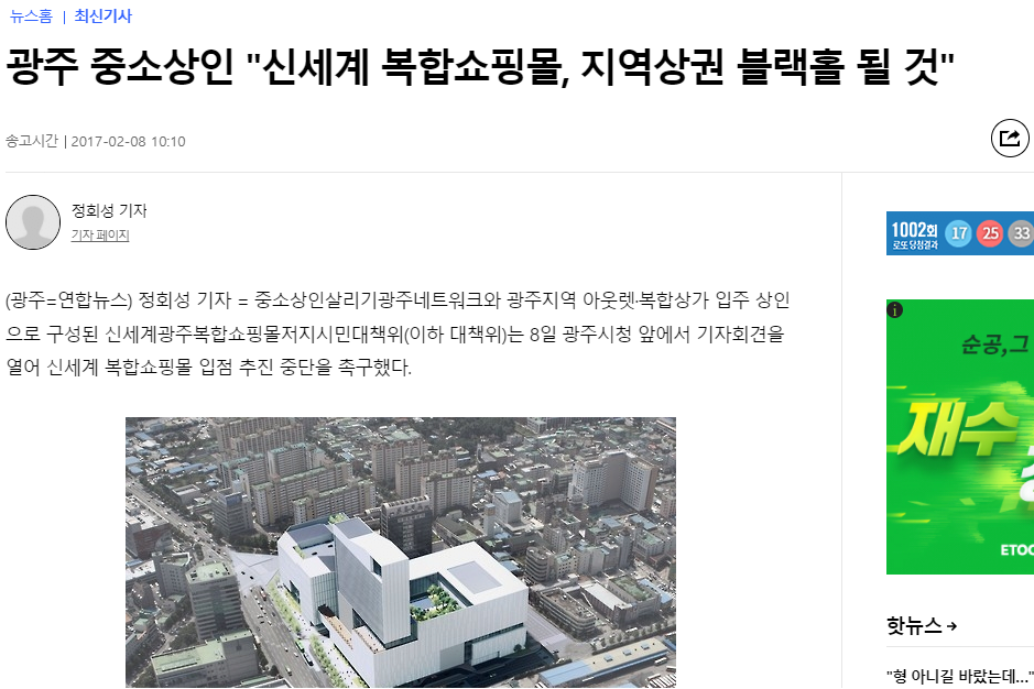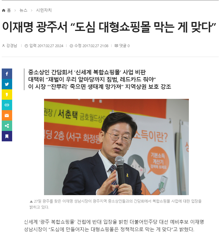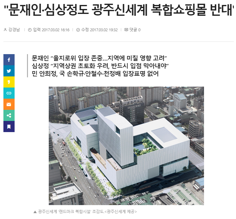 광주의 쇼핑몰 유치에 반대에 나선거임.