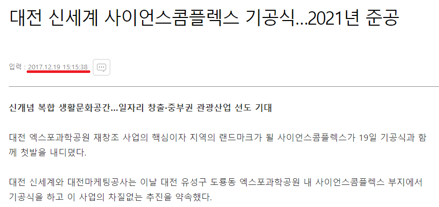 바로 대전임. 대전 또한 신세계와 2015년에 계획을 세웠지만
