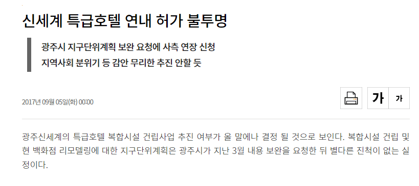 2017년 광주의 복합몰 사업이 흐지부지되고 있을동안에