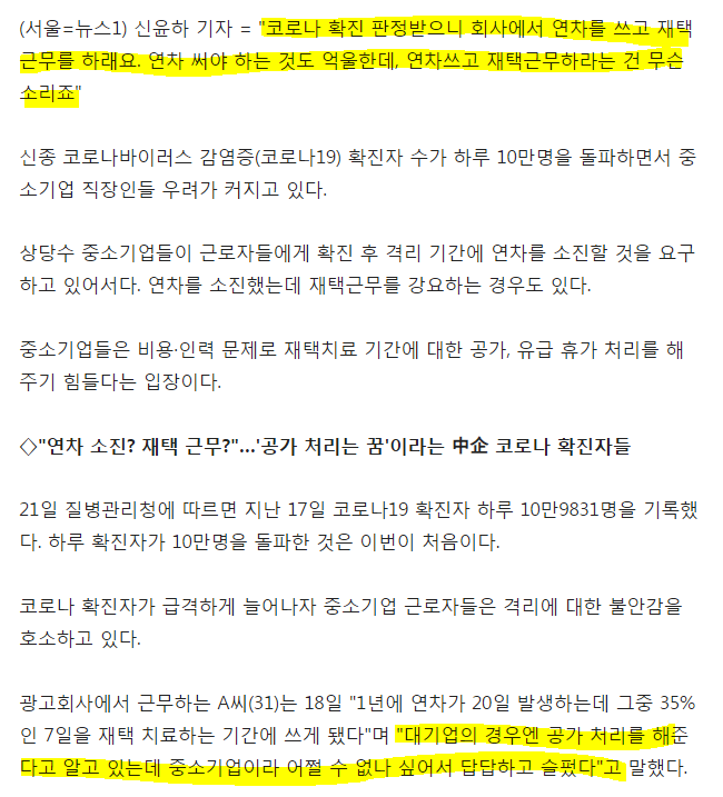 확진인데 연차쓰는게 이상한거임
