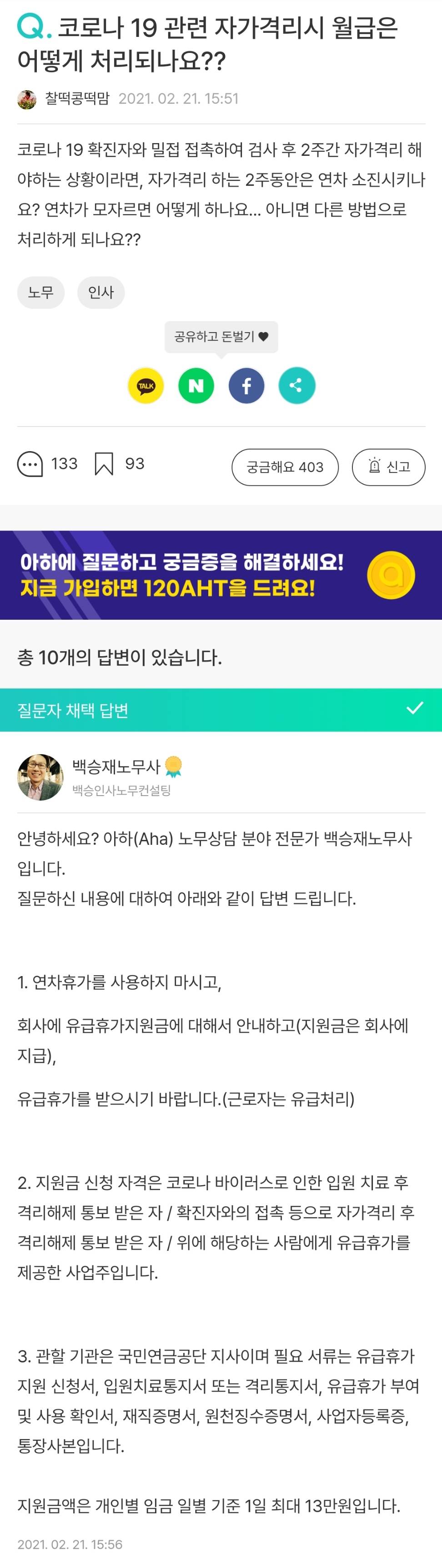 격리기간 무급처리하고 직원이 결리지원금 받는거 아닌가?