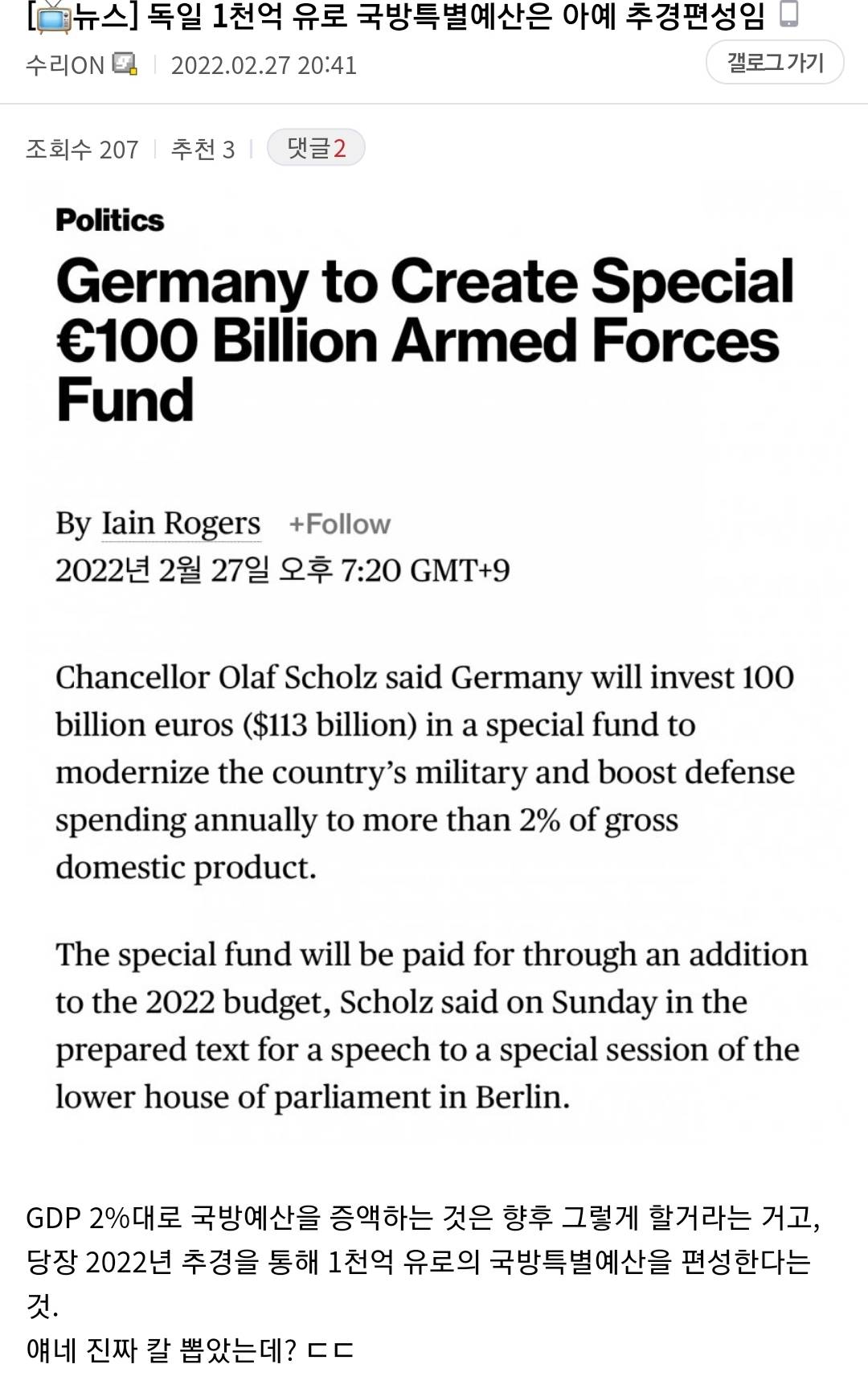 쟤네 국방예산 2퍼면 80조
