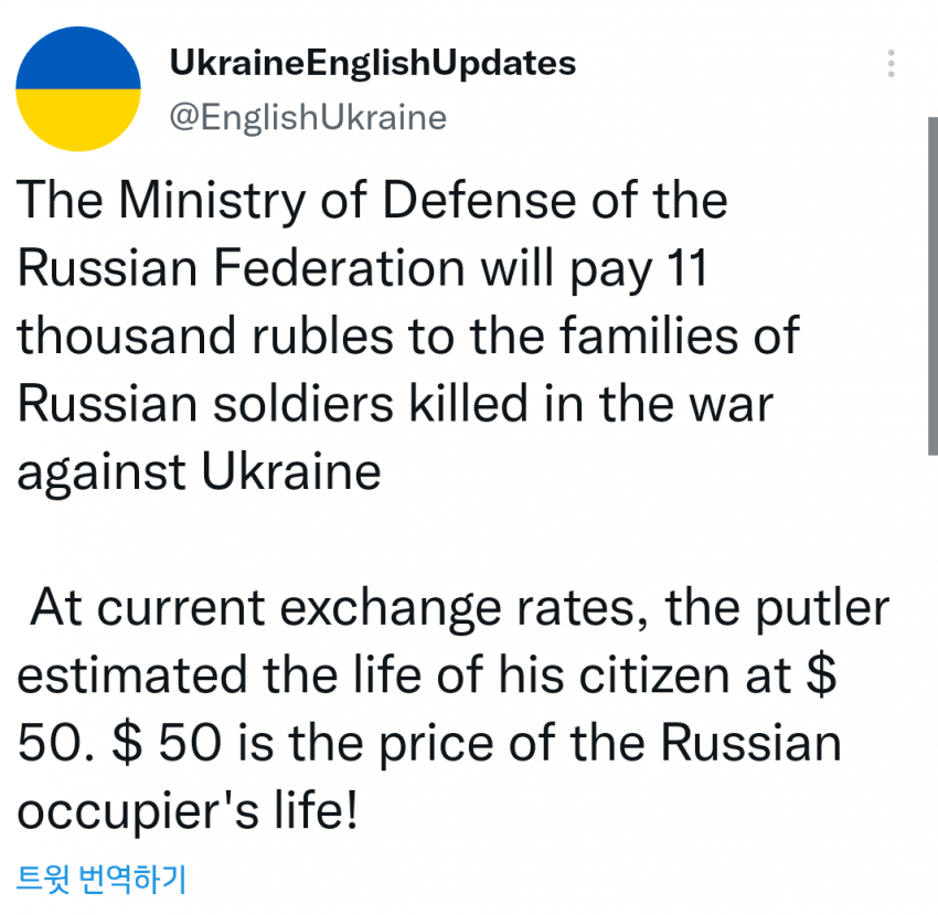 전사한 러시아군 유가족에게 보상으로 50달러줌