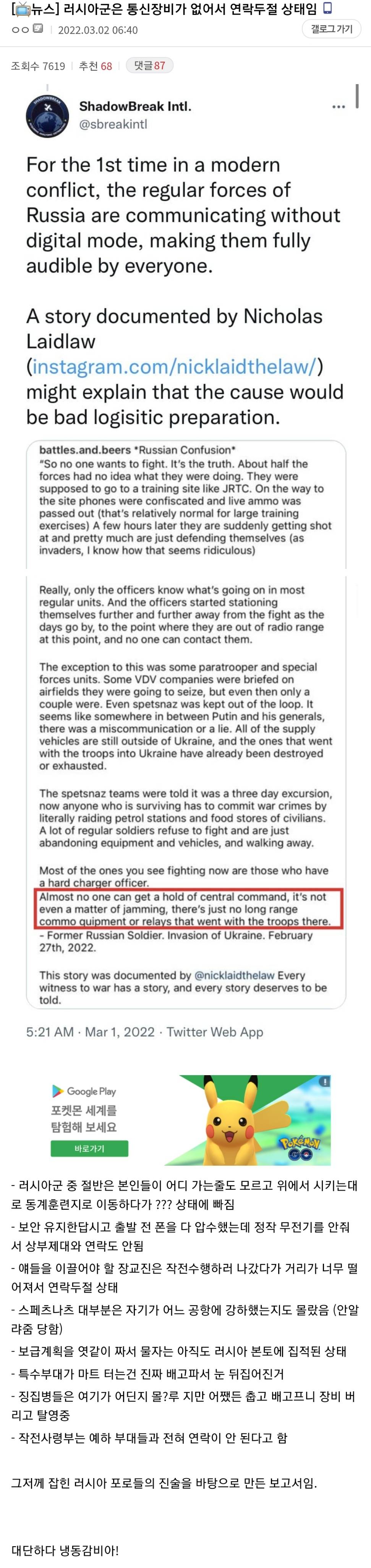 특히 장교가 뒤진 부대는 상급부대랑 연락도 안되고