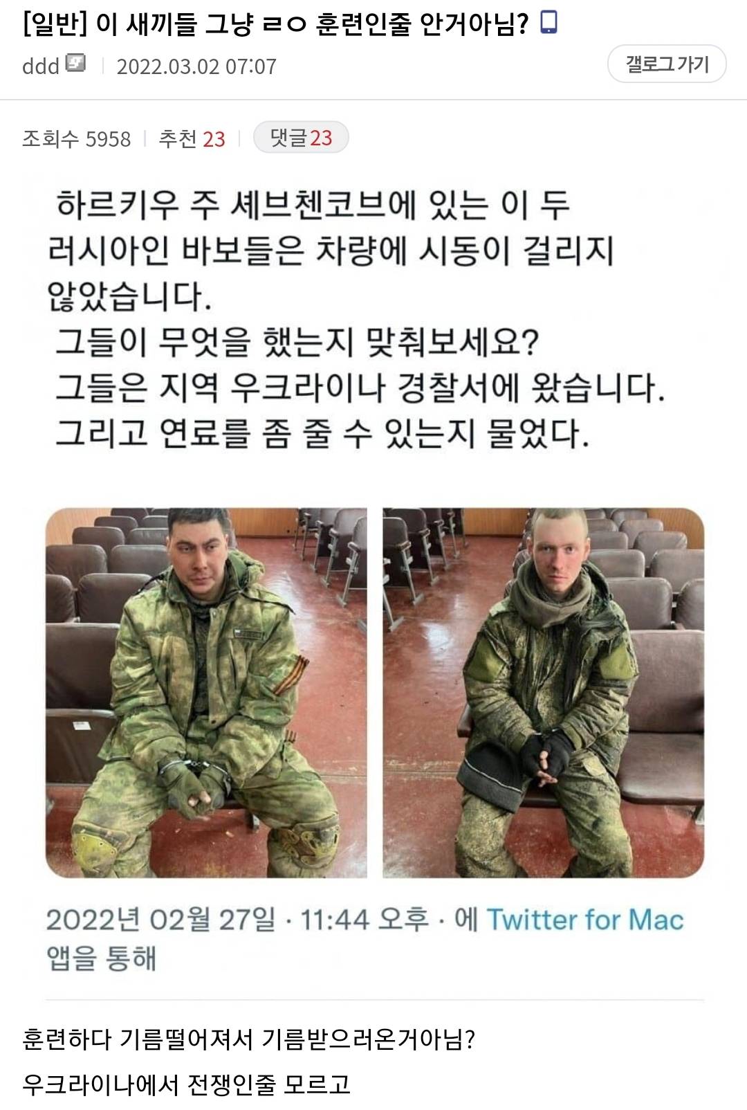 훈련이라고 끌려왔는데 물자 떨어지니 답이 없음