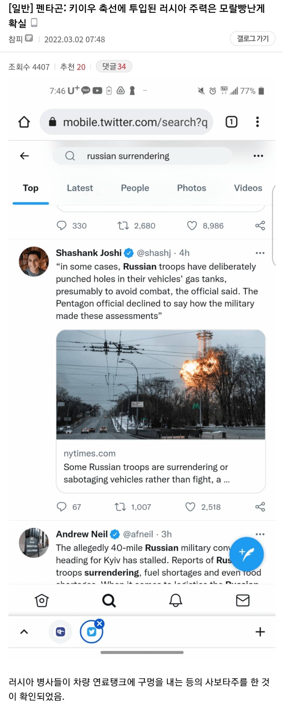 뒤질 판이니 연료통 구멍내버리고 낙오되서 투항하나봄