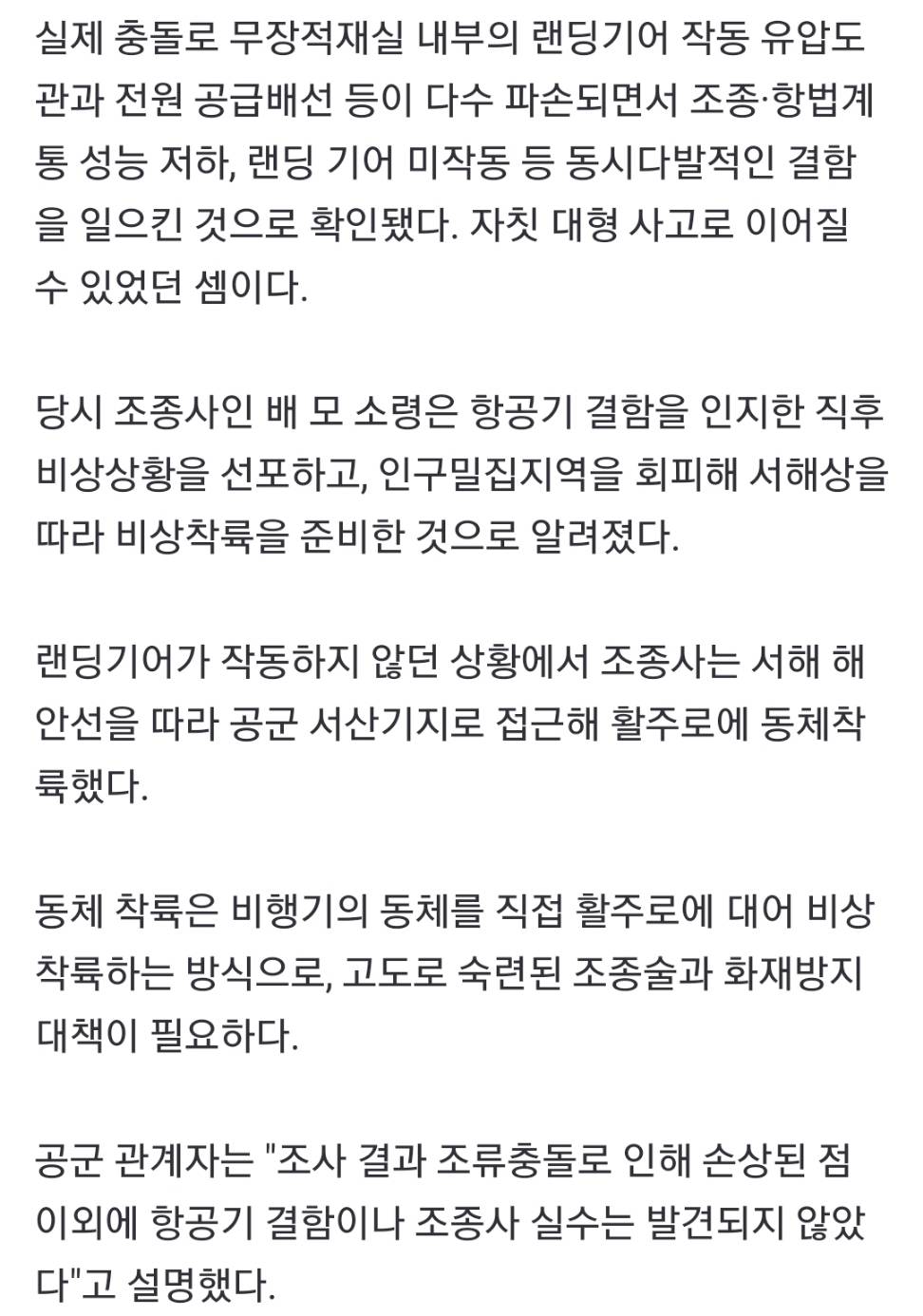 조종사분이 에이스라 동체 착륙해서 기체 건진듯