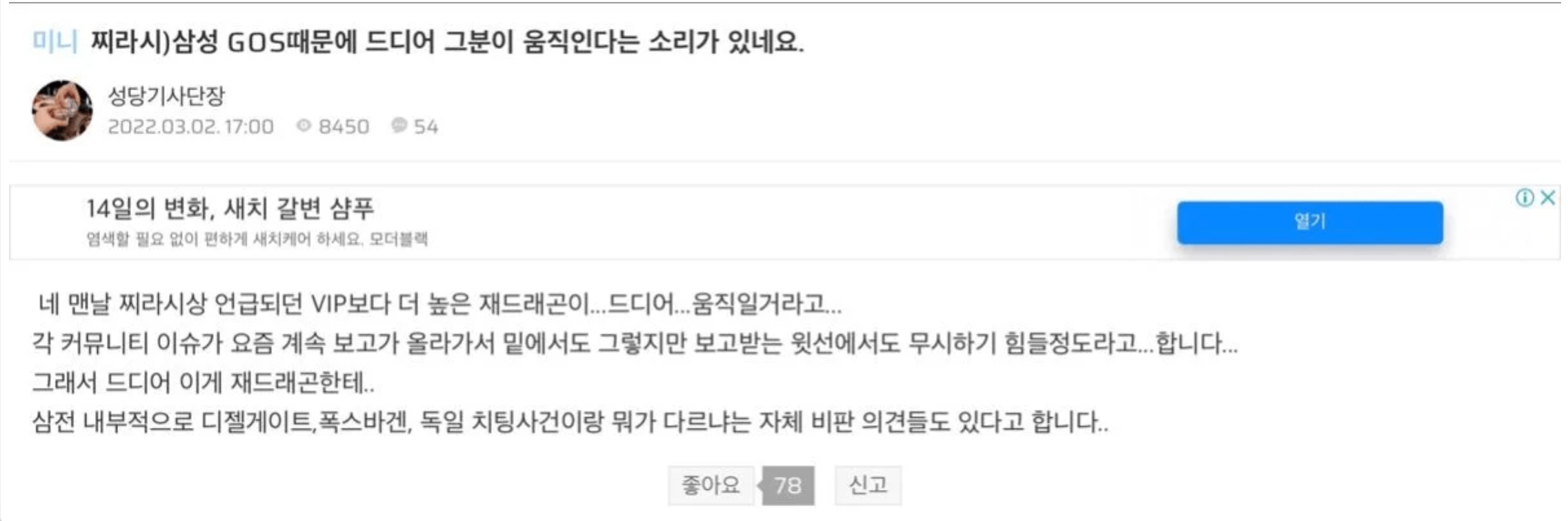 용이형 깜빵 나오자마자 삼성앱스 광고뜨는거 다 날려버린 것 때문에 사람들 기대하는 눈치