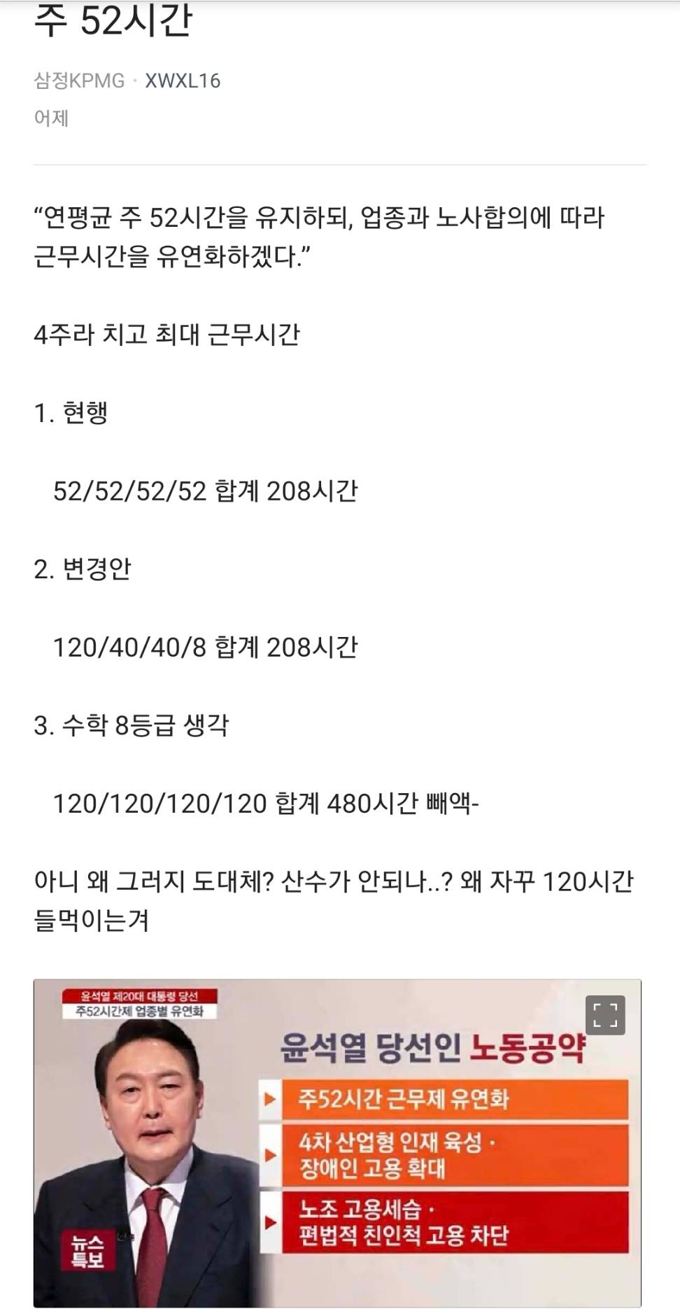 능지의 문제가 아님. 우리같은 정치관심가지고보는사람 제외하면 쟤들의 선동방식이 의외로잘먹히고, 선동용으로도 유용하거든. 모르는 사람은 '윤석열은 주120시간도 일할수잇어야 한다햇다며? 어우 ㅆㅂ 쟬어케뽑아?' 여기서 끝나