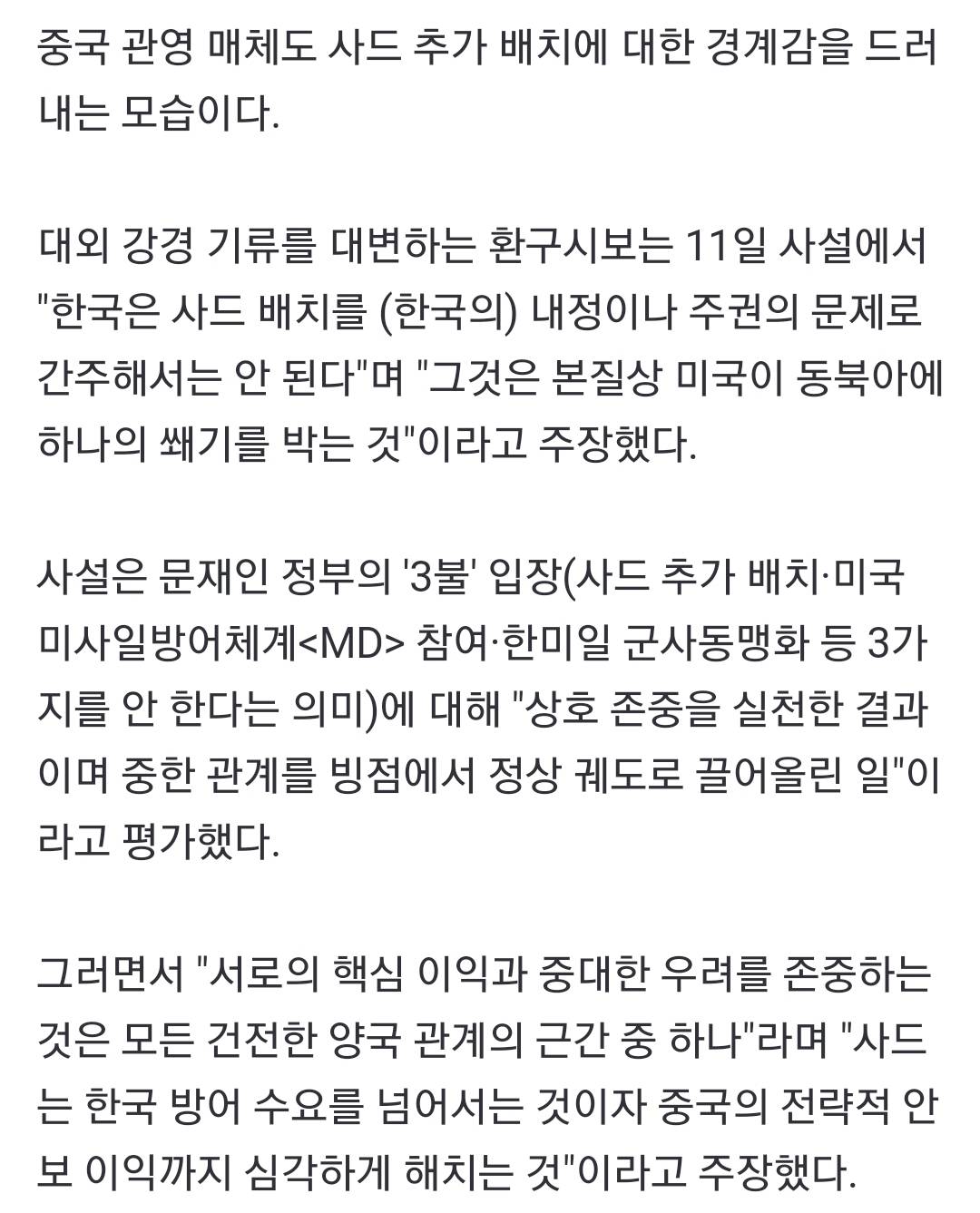 공격무기도 아니고 미사일 방어체계인 사드가