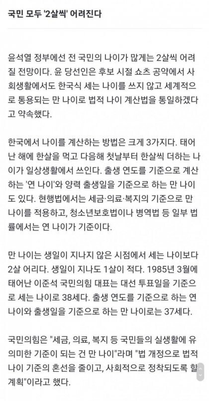 오 이거 맘에 드네 난 개인적으로 우리나라 나이 안쓴지 한참됨 12월 31일에 태어나면 하루뒤 두살이라는게 말이나 되는지