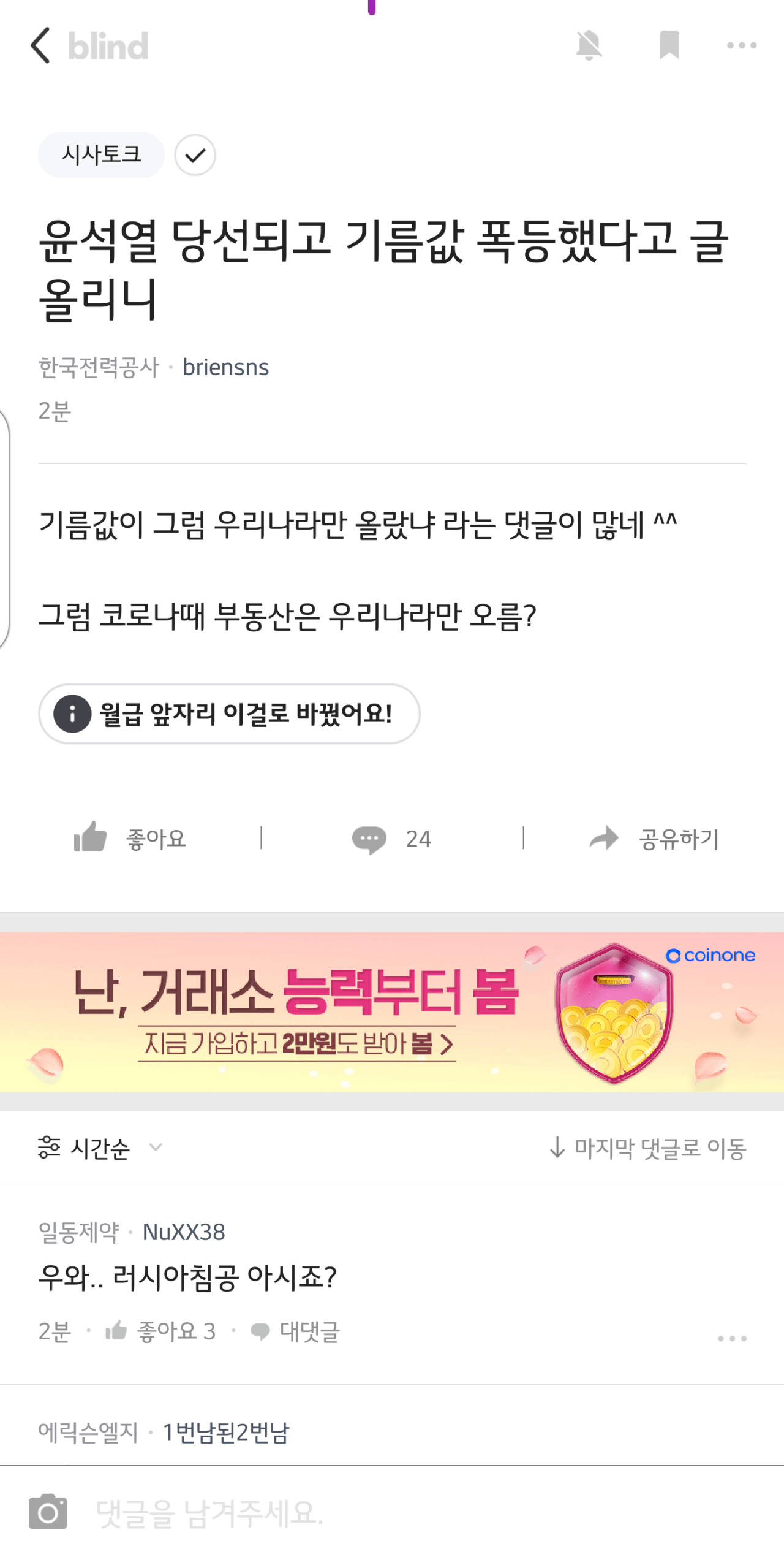저 밑에 기름값글의 댓글임ㅋㅋ