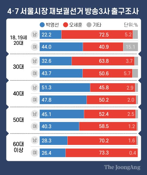 기본적으로 2030여자를 뺏겼으니 어쩔수 없이 2030남자라도 안아야될텐데, 얘들이 이번같이 최대화력 냈을때조차 여자한테 밀린다는거임