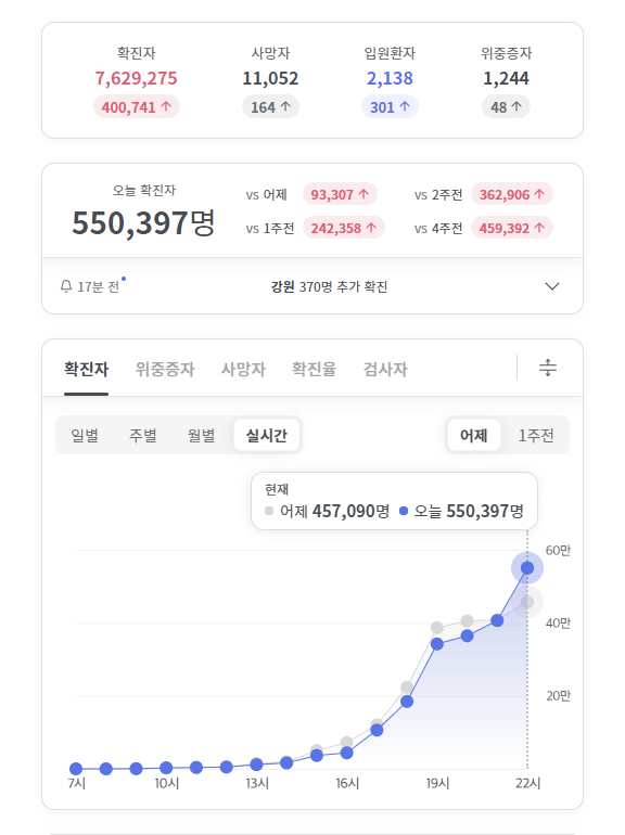 누적확진자 천만명은 찍어야 숏들어가는거지