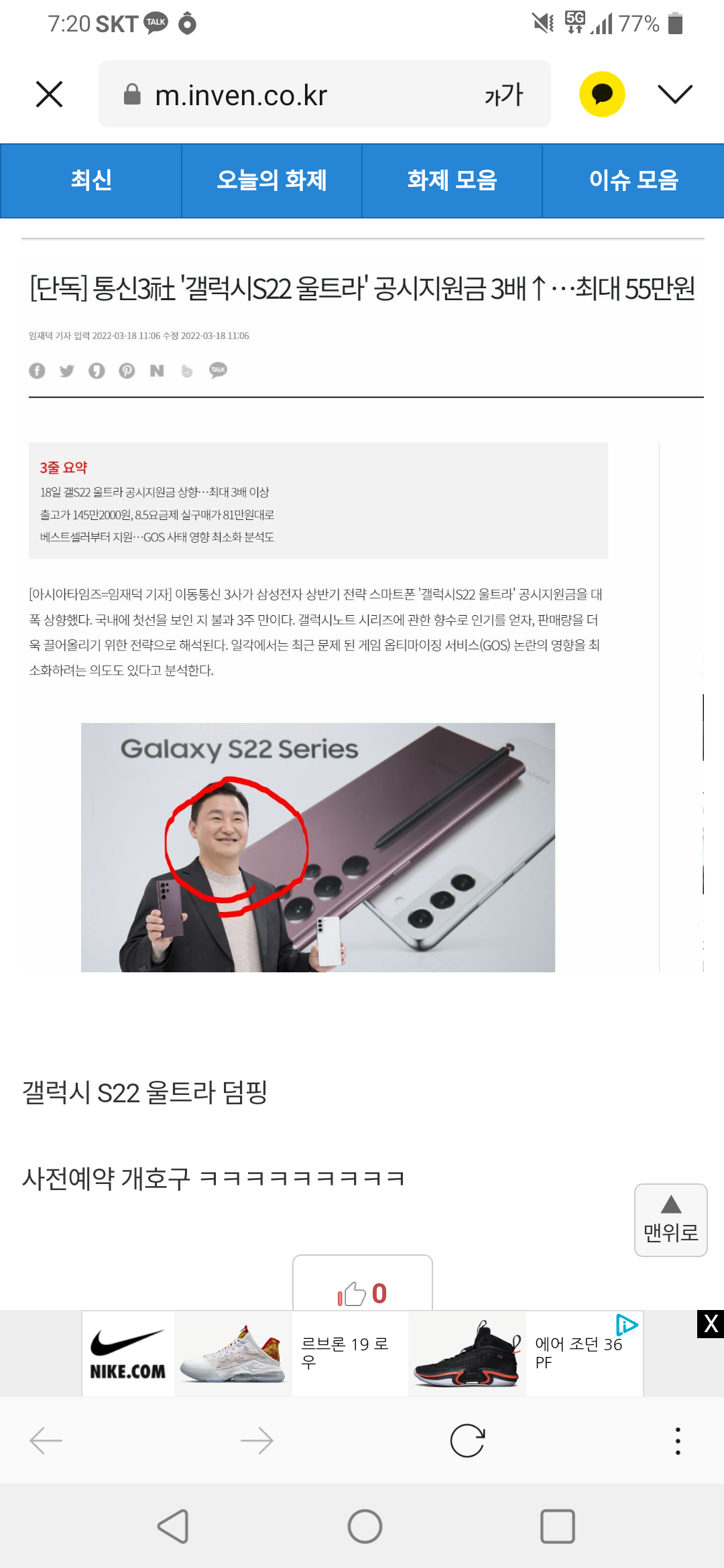 시발 나도 이번에 s22 울트라로 처음 사전예약해서 산건데 다시는 삼성폰 사전예약은 사지 않겠습니다