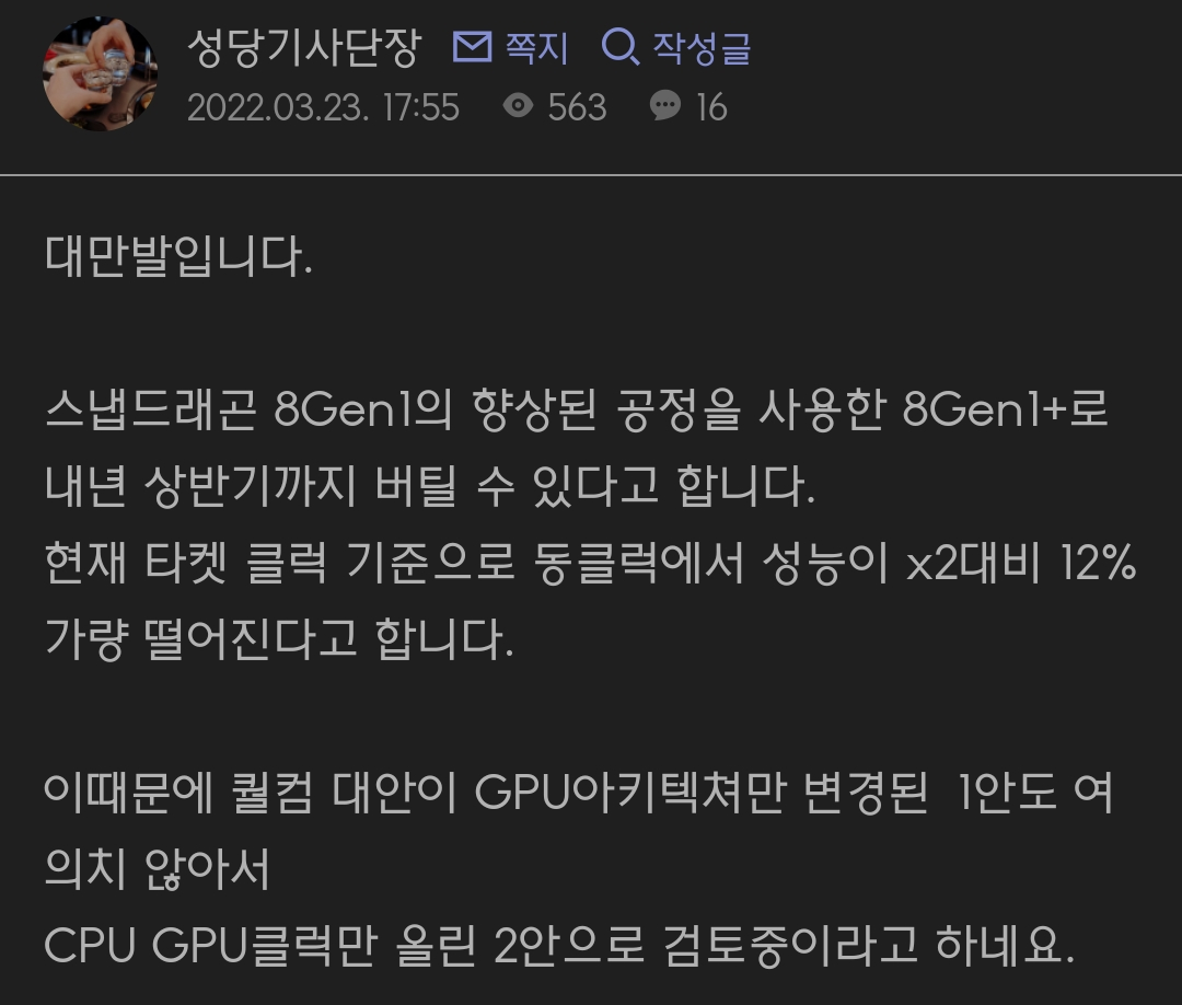 Tsmc빨 받고도 성능이 개판이라 이제 arm레퍼런스 설계 자체가 똥이라는거.