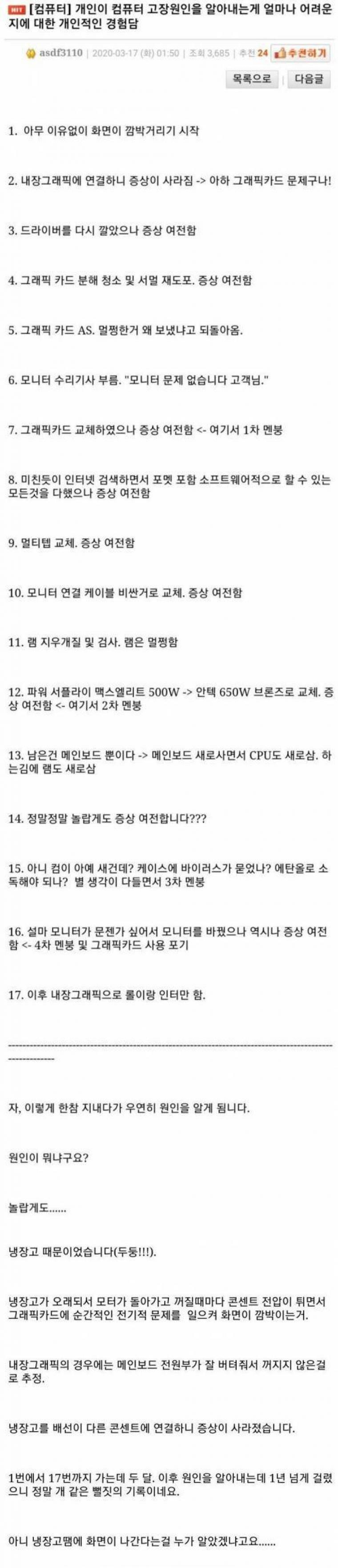 나 실제로 전기라인 한쪽이 나ㅆ다 들어왔다해서 보니까 냉장고 고장나서 냉장고 코드빼니 돌아옴