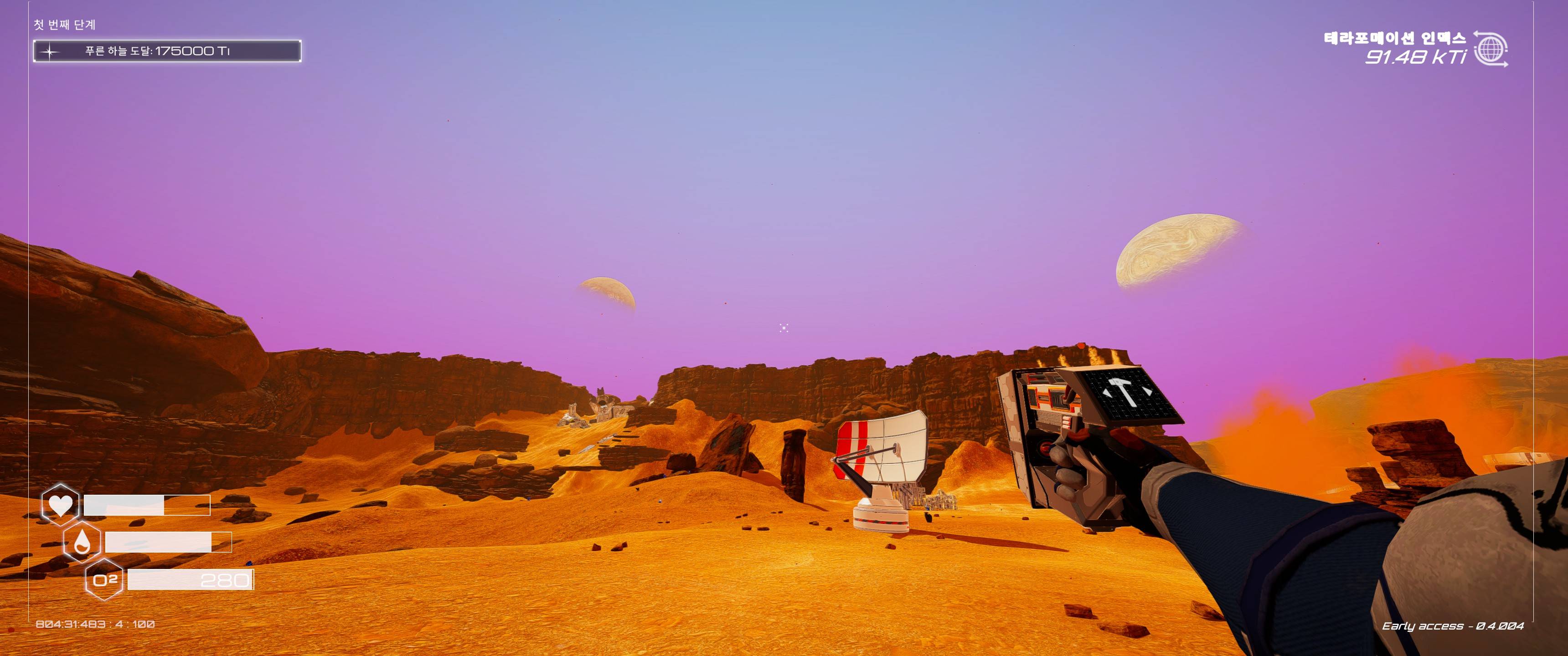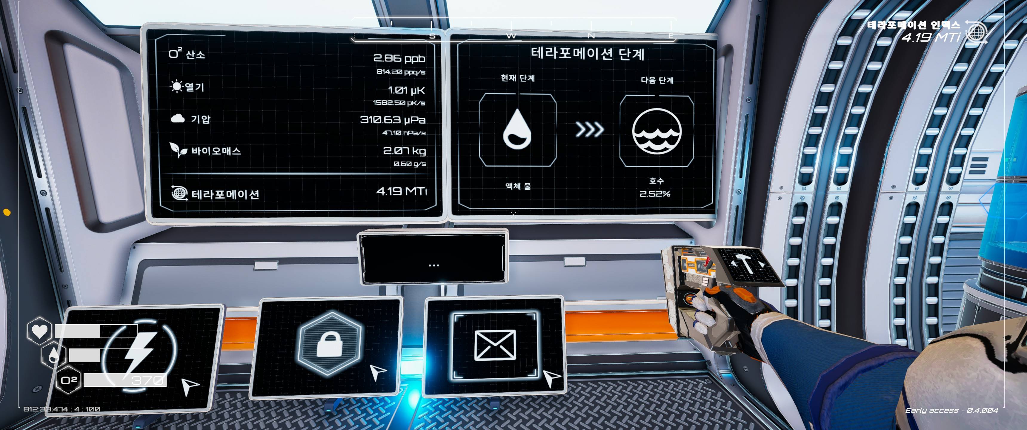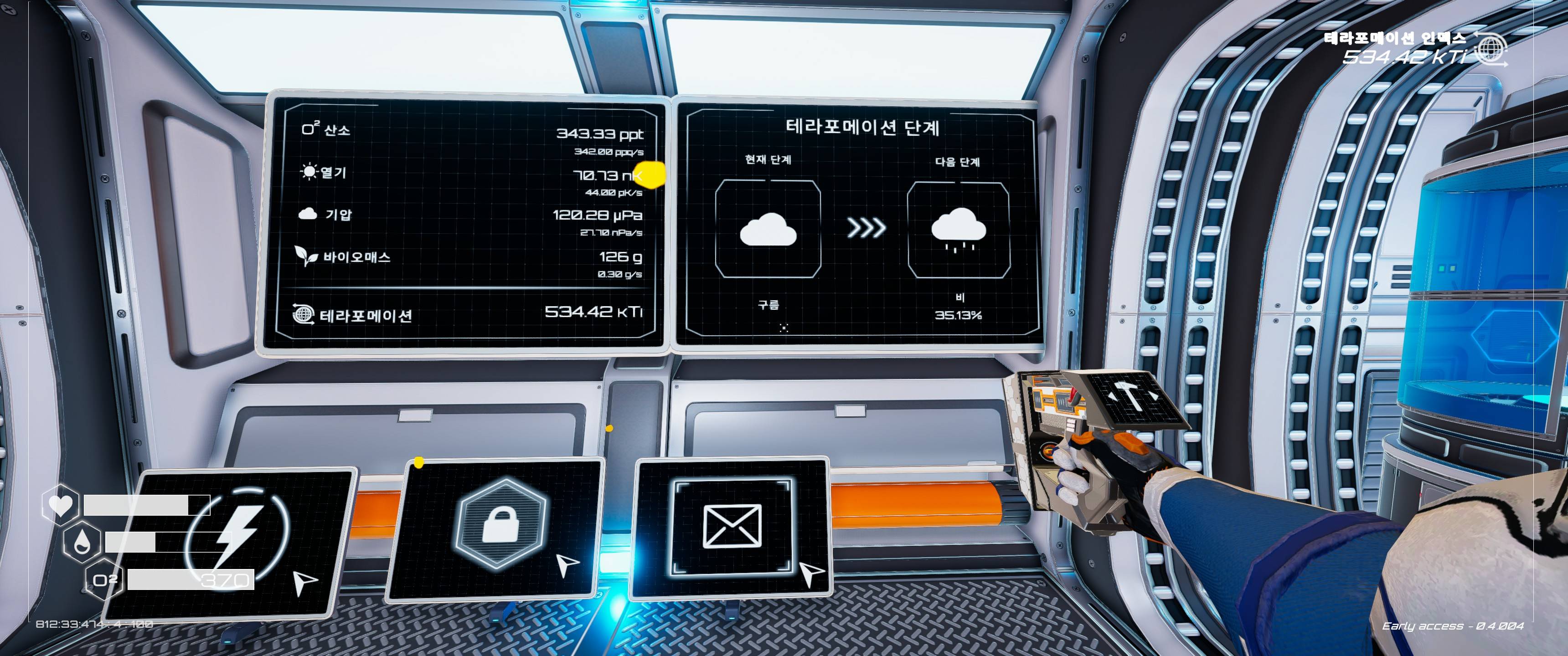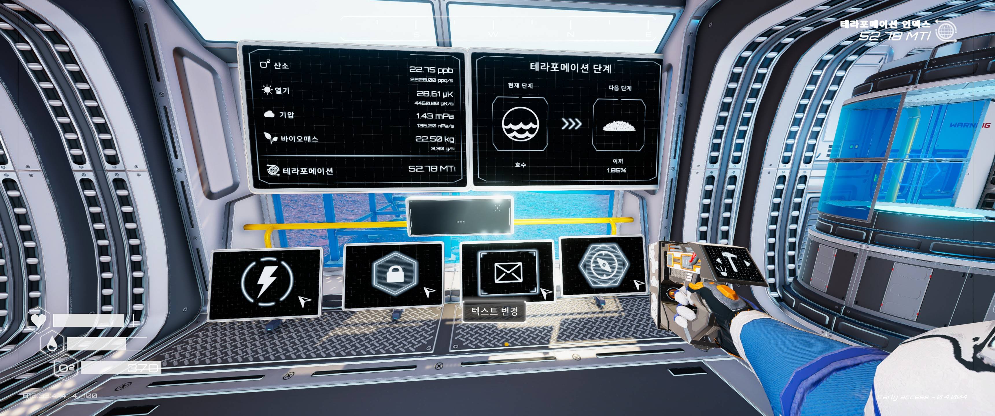 이 겜은 전체적인 테라포밍 진행도와 행성의 산소, 열기, 기압에 따라 장비가 점점 해금됨