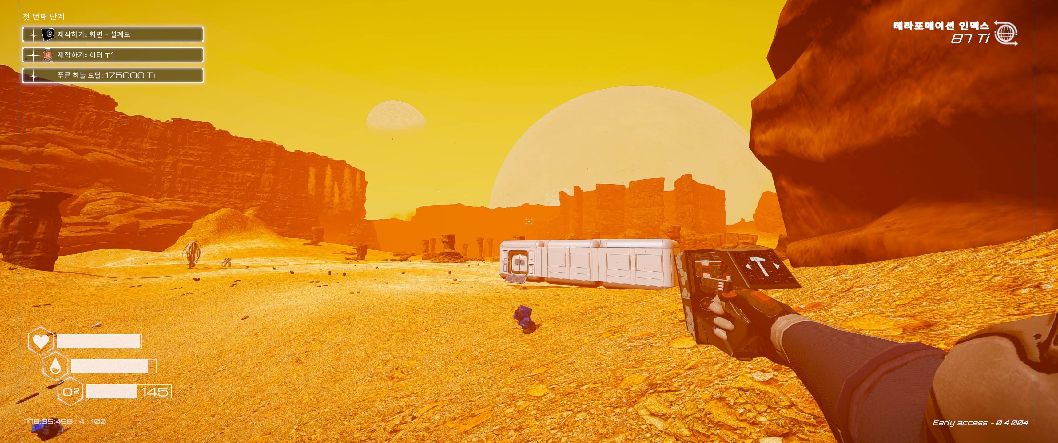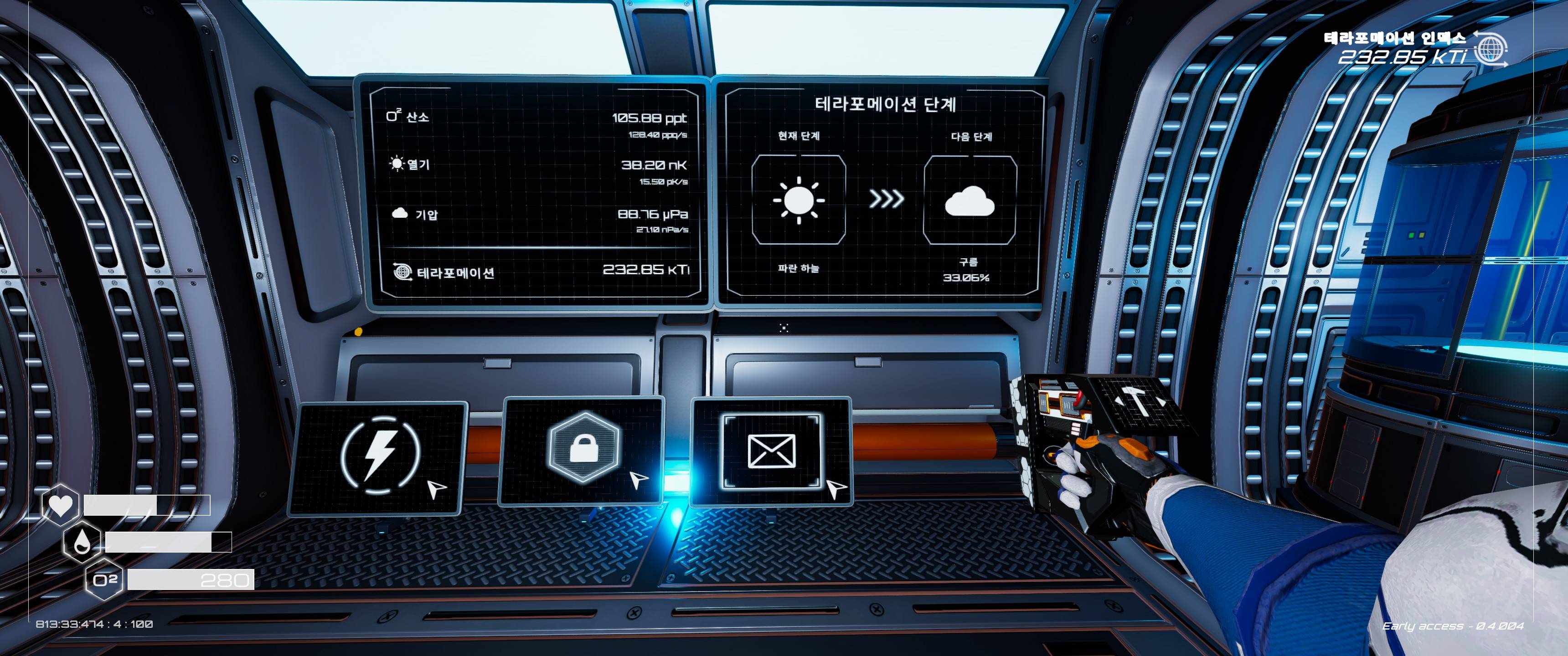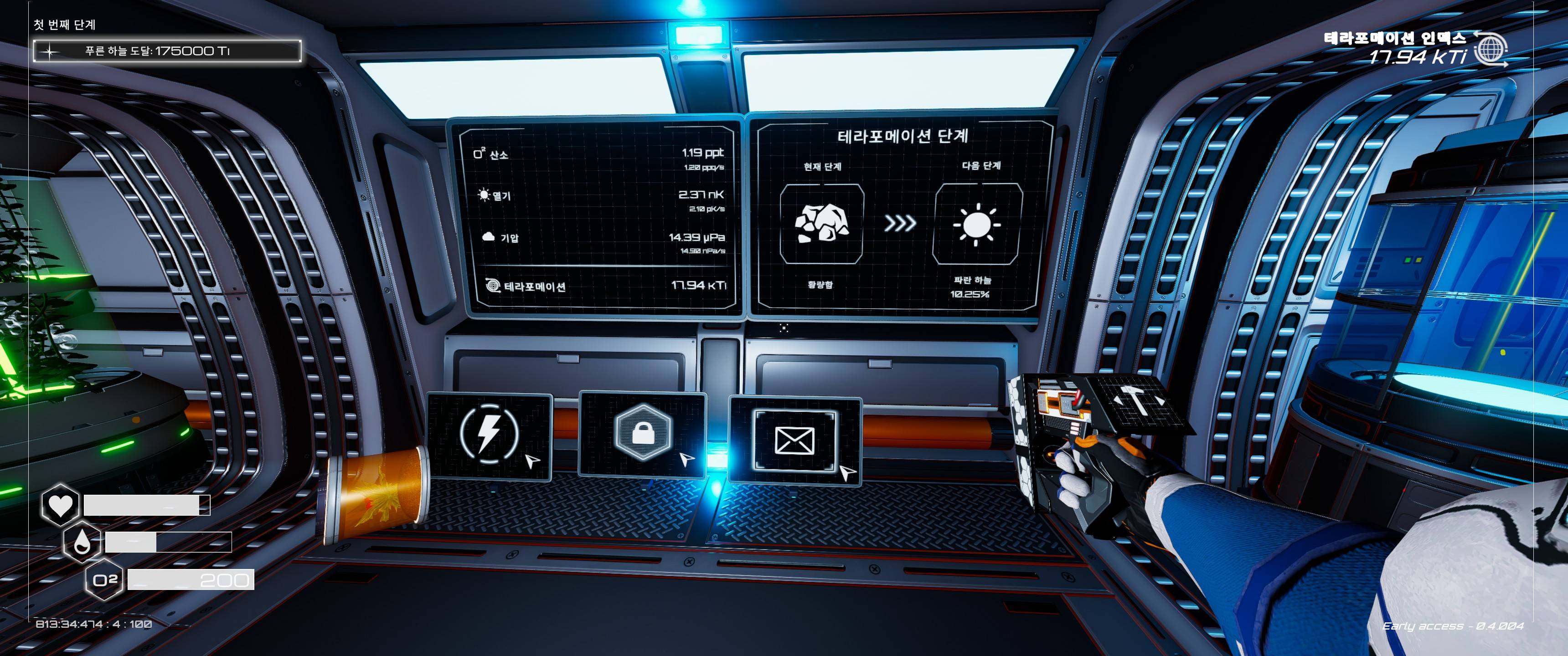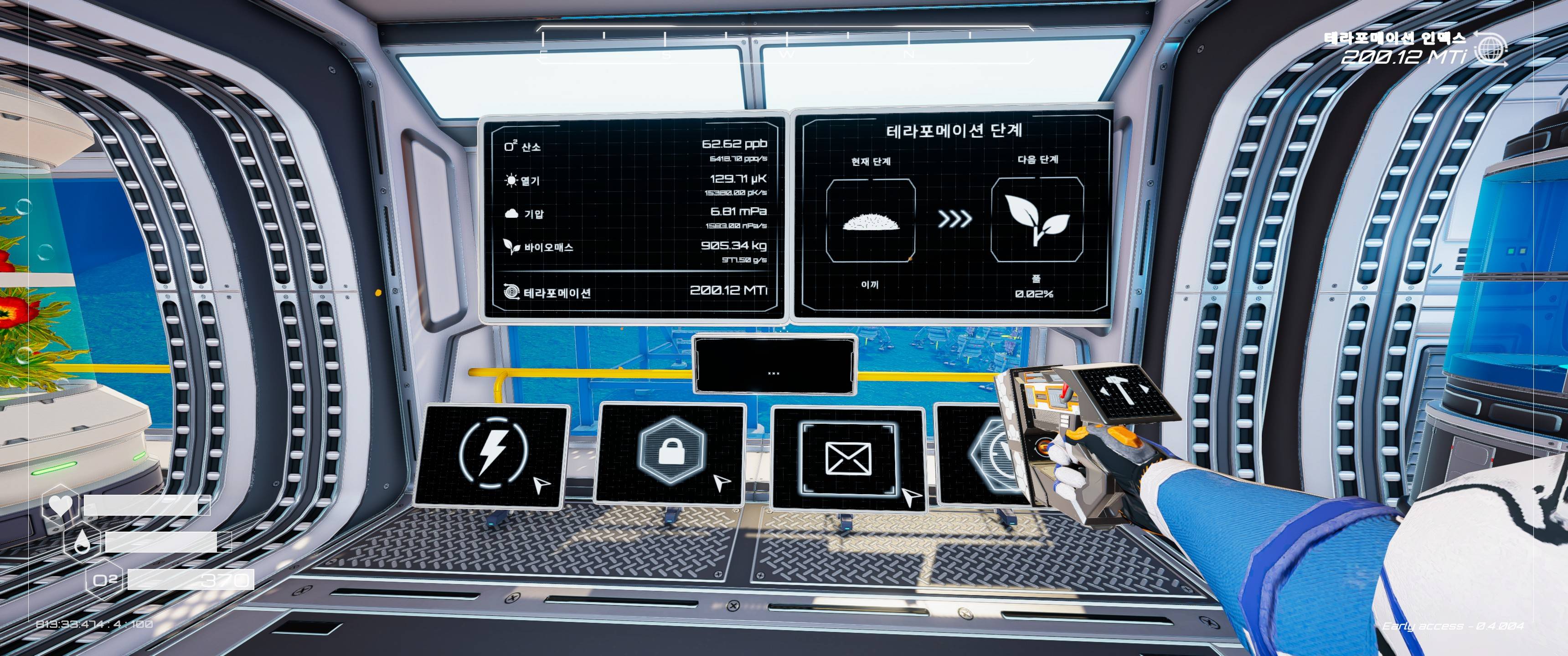 이 겜은 전체적인 테라포밍 진행도와 행성의 산소, 열기, 기압에 따라 장비가 점점 해금됨