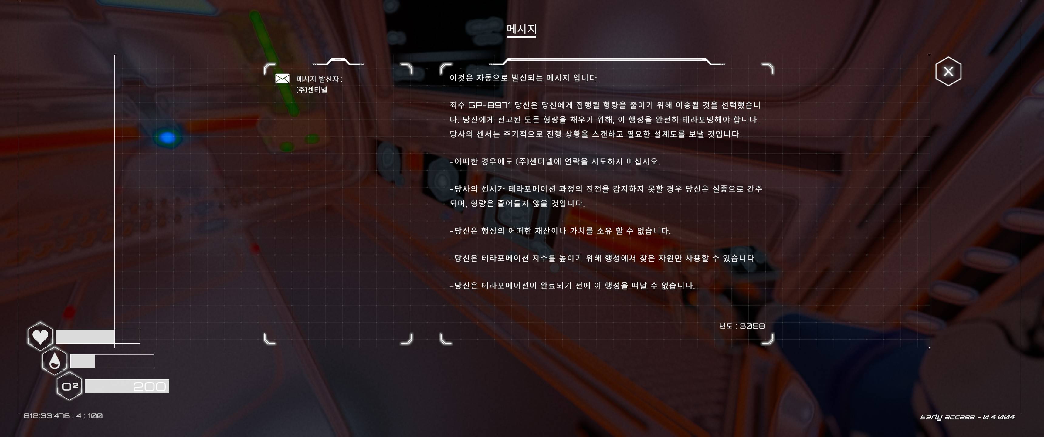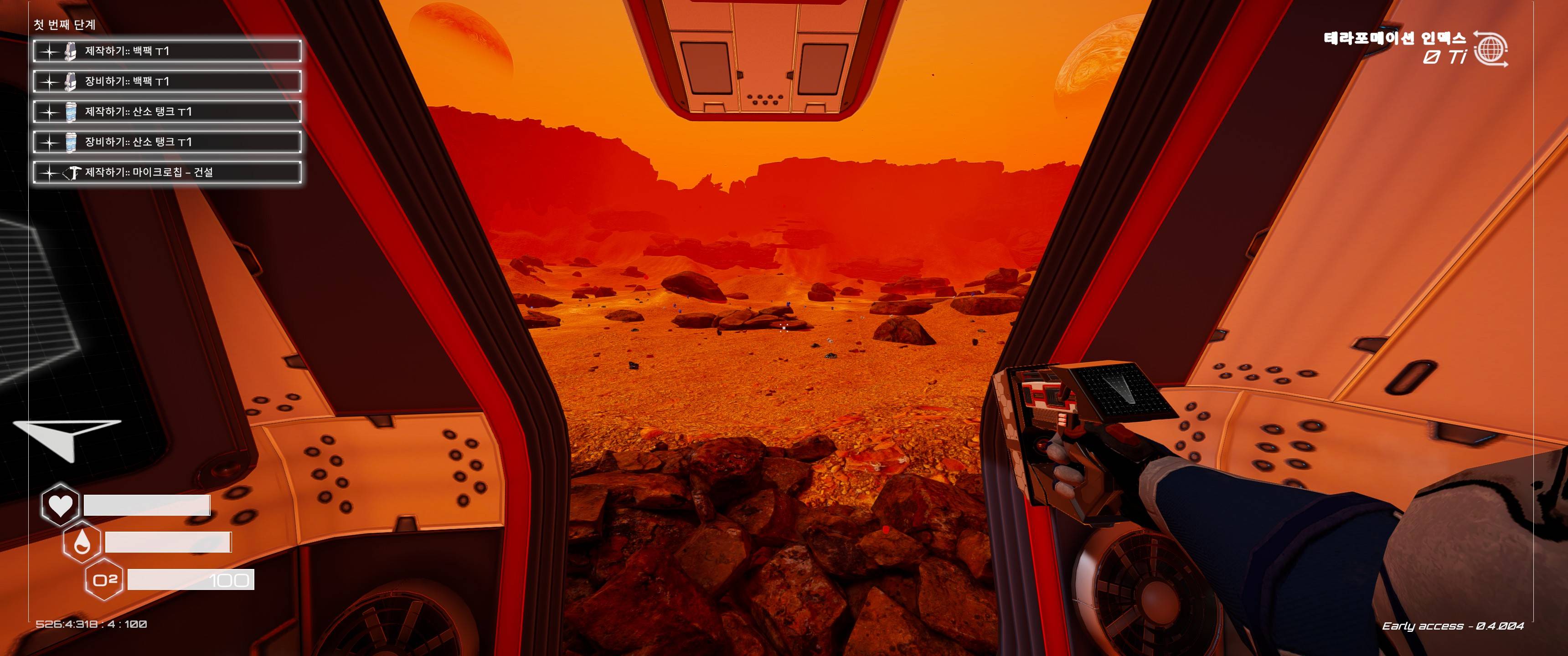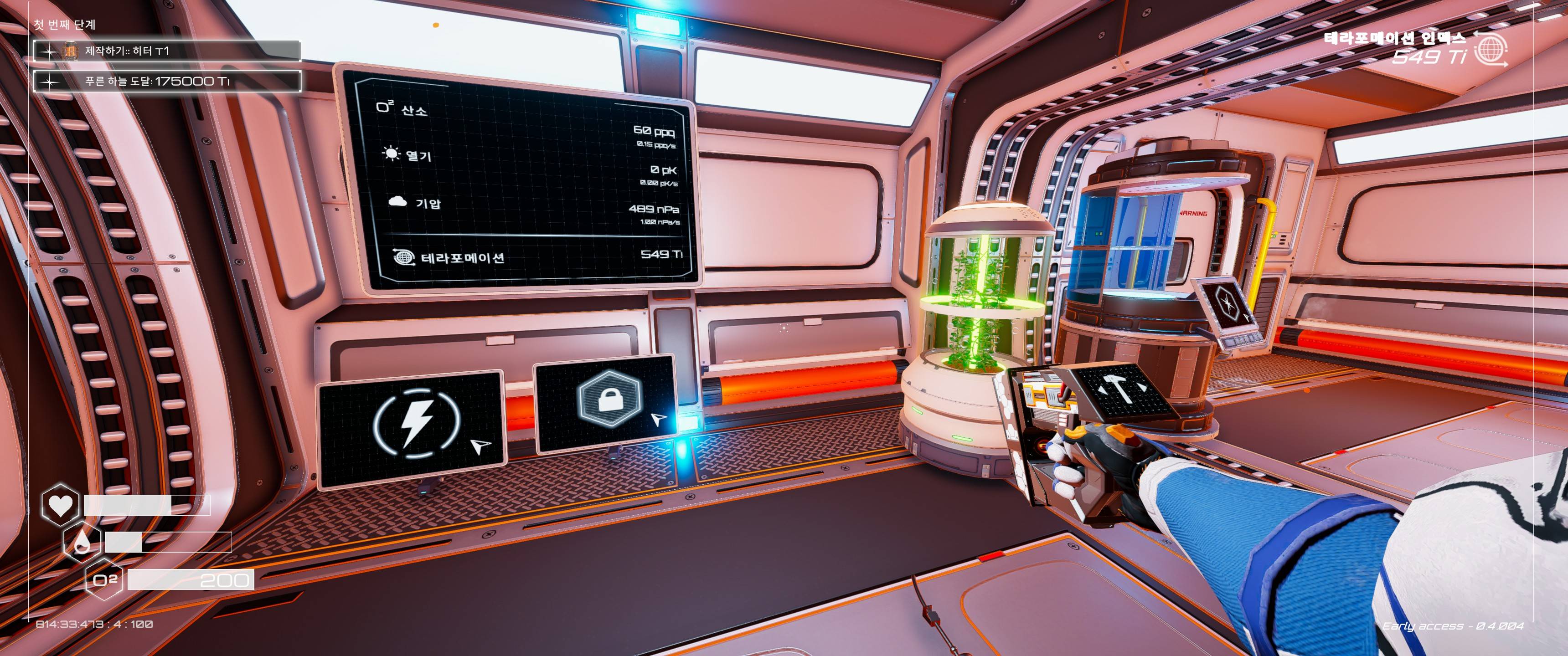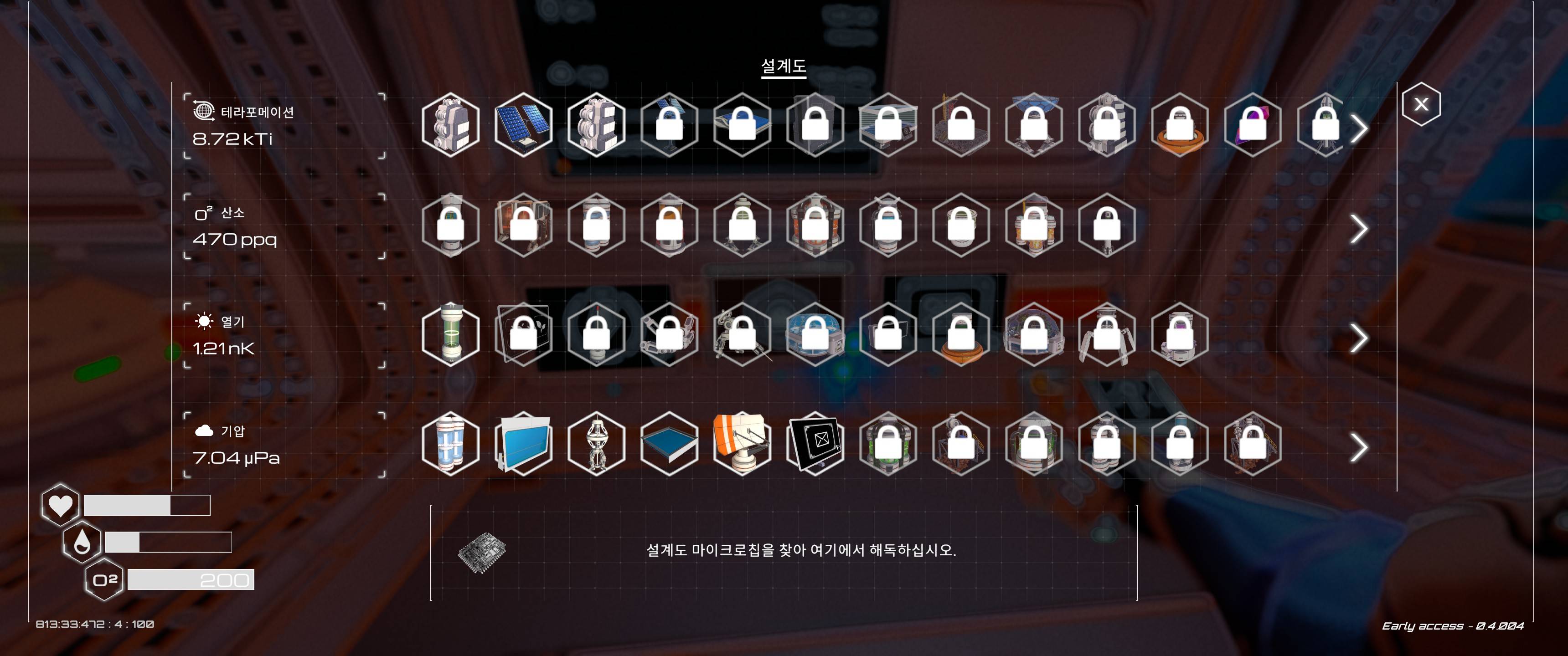 이 겜은 전체적인 테라포밍 진행도와 행성의 산소, 열기, 기압에 따라 장비가 점점 해금됨