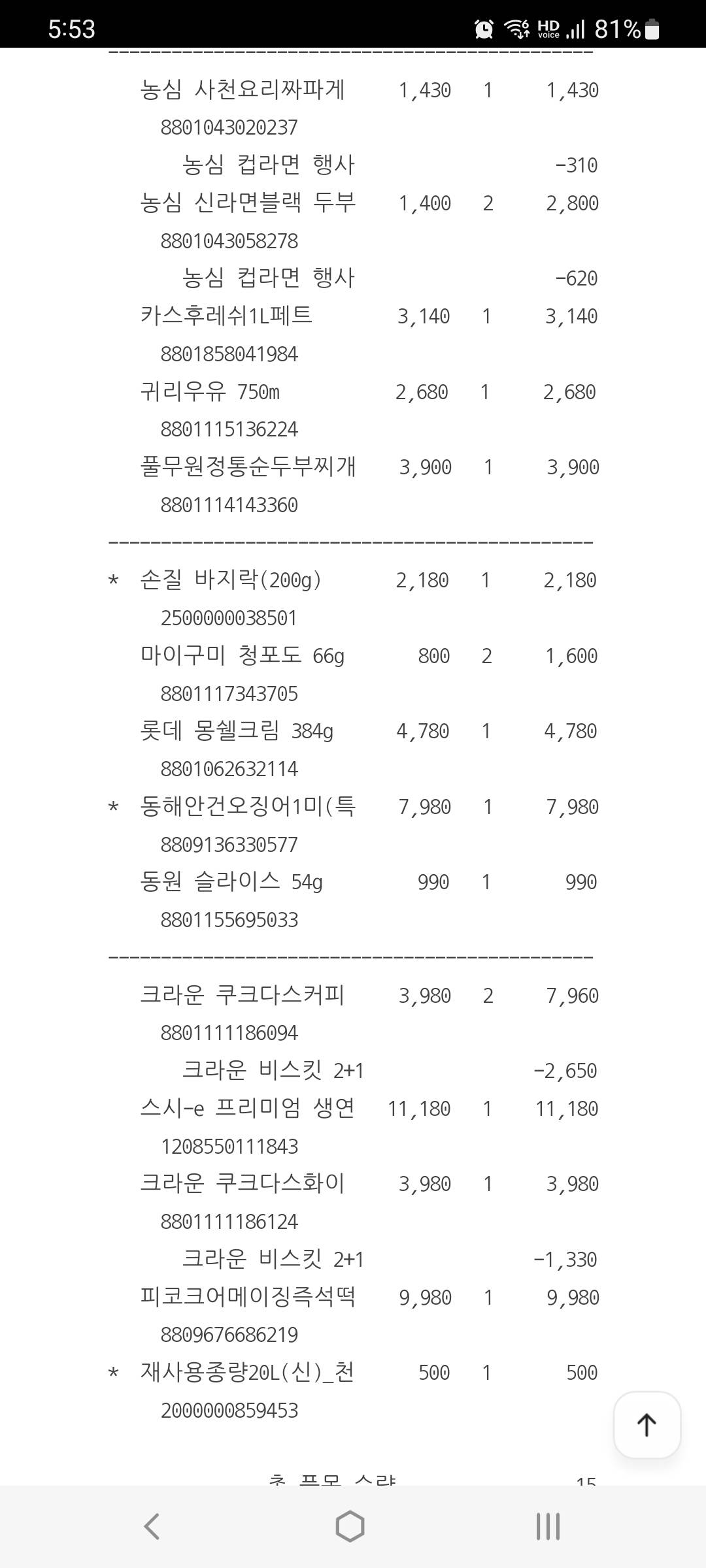 심지어 쿠크다스 커피맛 두개..