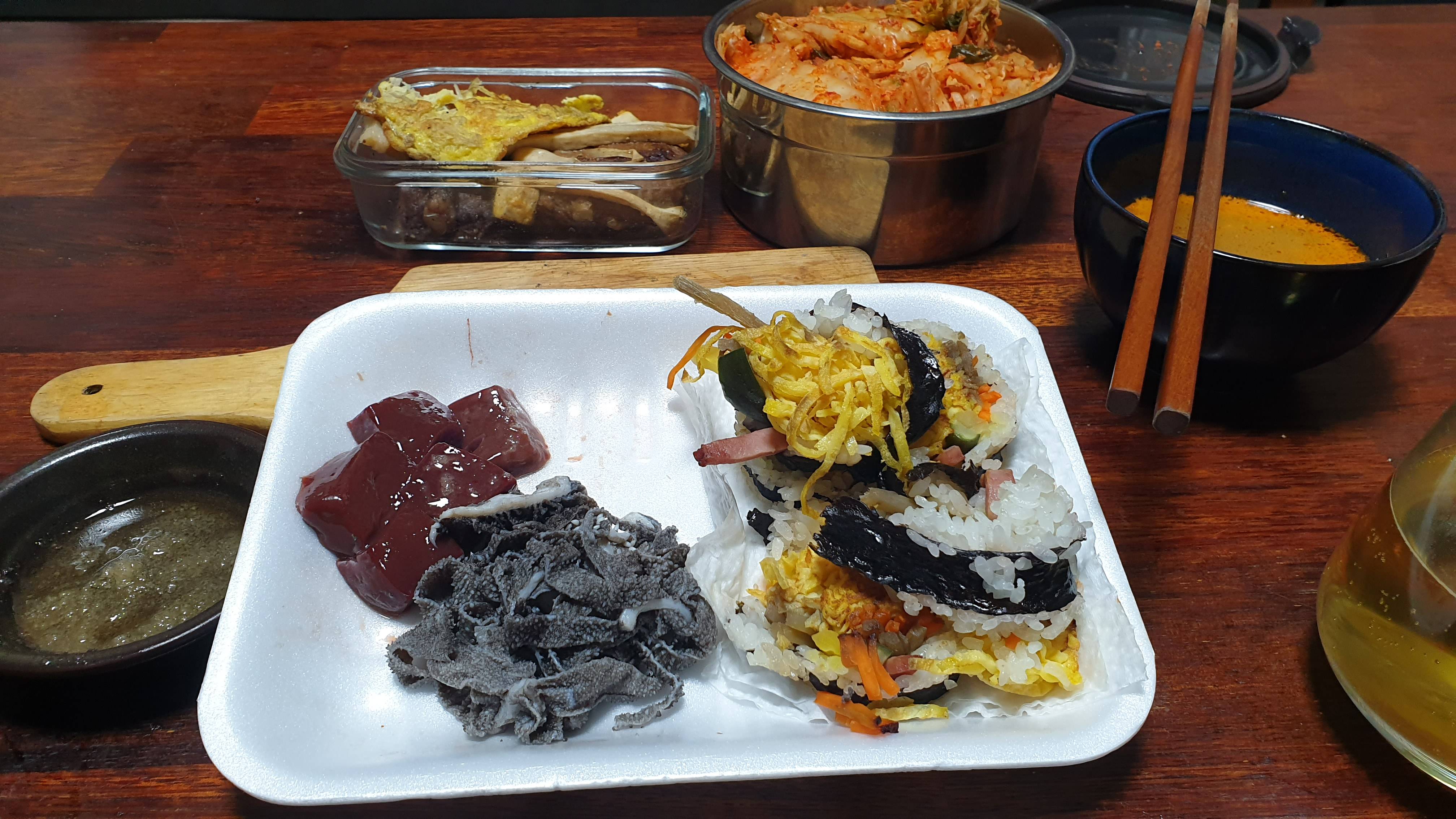 생간도 맛잇는데 데운 김밥까지.. 어질어질 할 정도다..