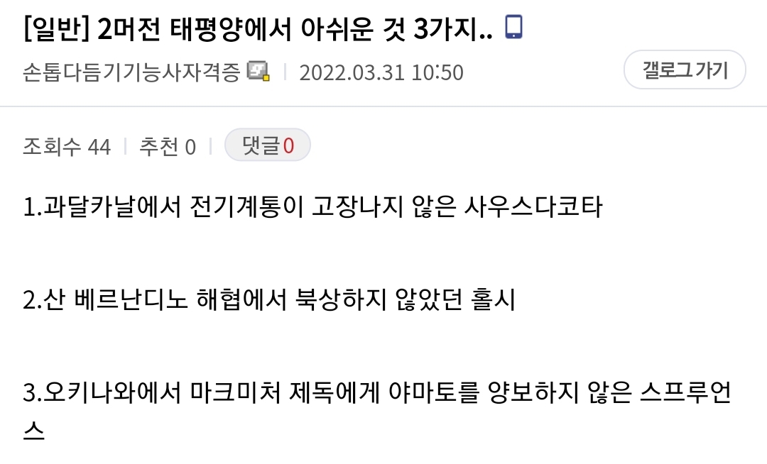 2. 홀시가 낚여서 북상안했으면 야마토 vs 아이오와 세기의 대결 가능했지 국방티비 역전다방에서도 나온 얘기