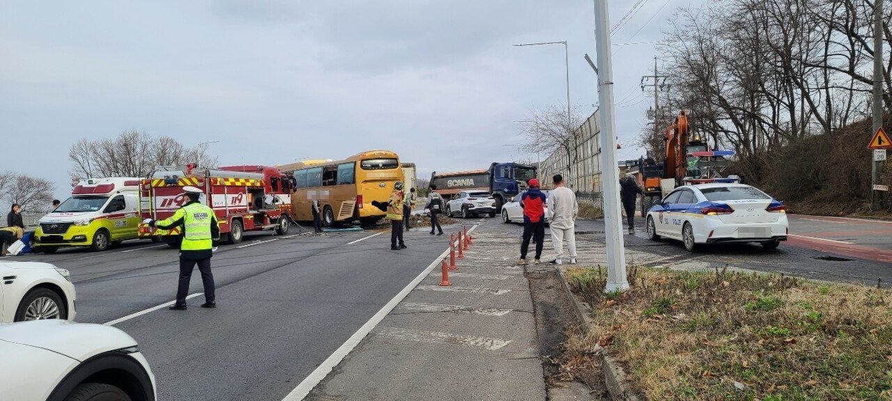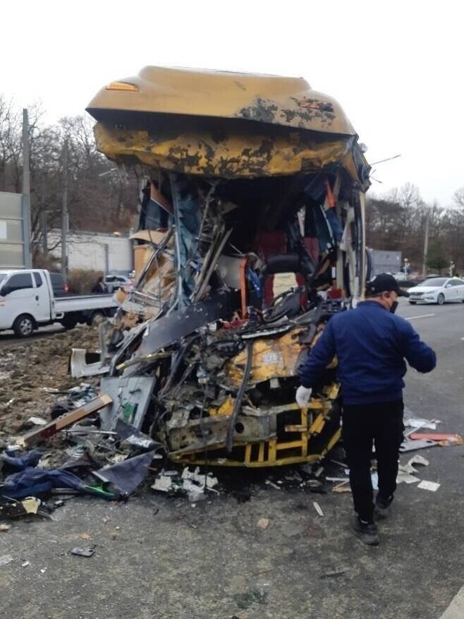 중상 여러명이면 사망자 더 나올 수도 있겠네 버스 풀브레이킹 한 거 같지만 너무 쎄게박았다
