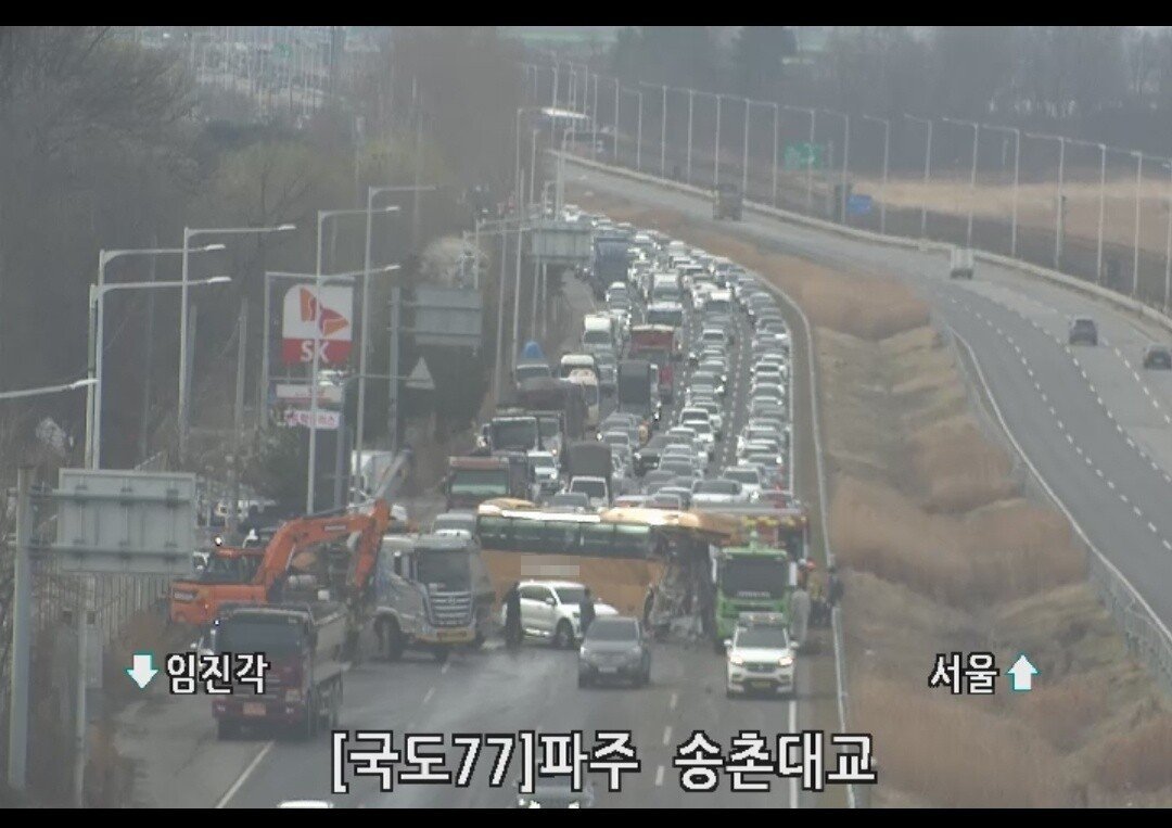 트럭은 주유하고 나가는 중이었는데 병신같이 운전했지 덤프 운전자는 살았고 버스 승객 중 한명 사망한걸로 암 그 외에도 버스 승객 여러명 중상임