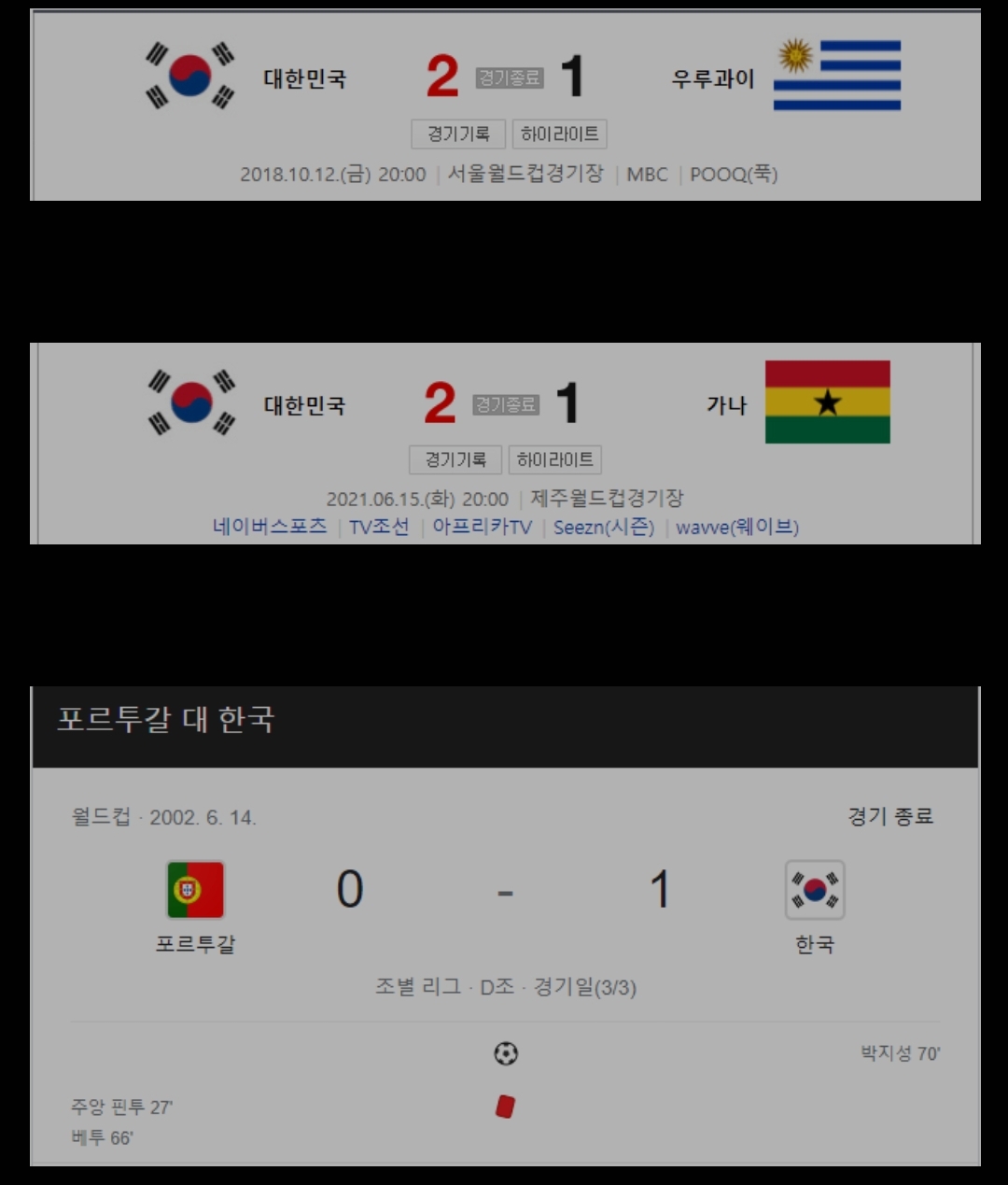 한국 0:5 포르투갈