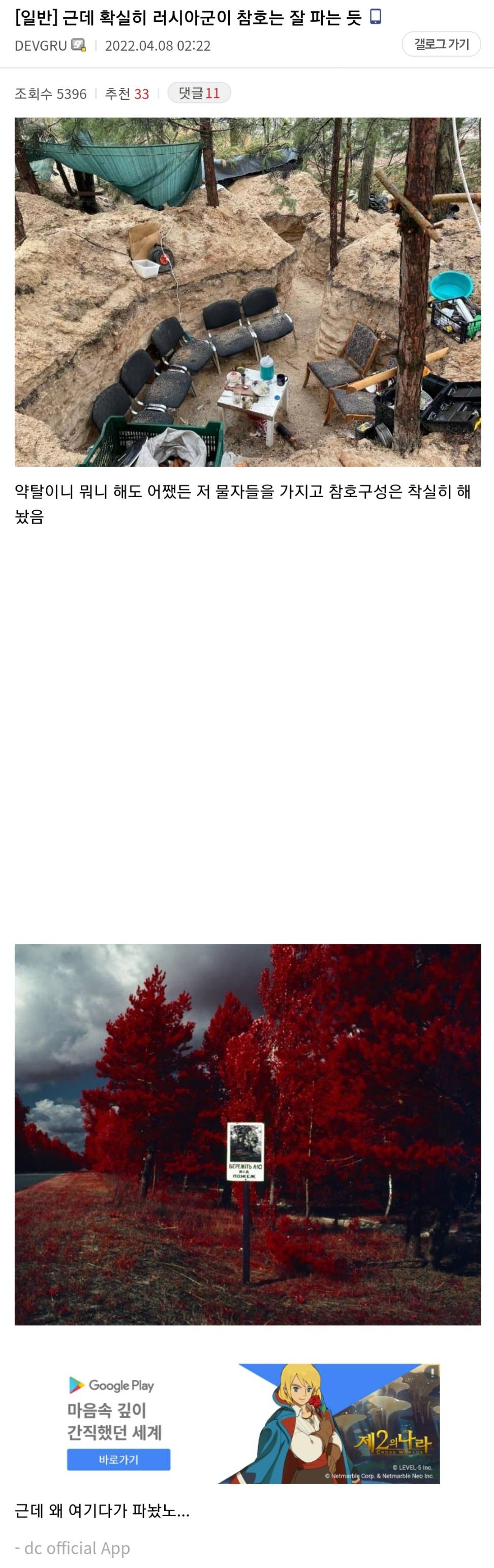 가있는건 상관없는데 제염토 덮어놓은걸 다 파헤치고 거기서 장기간 그걸 마시면서 먹고 자고 했으니 즛즛 저거 다시 덮어서 수습하는건 우크라가 해야되네