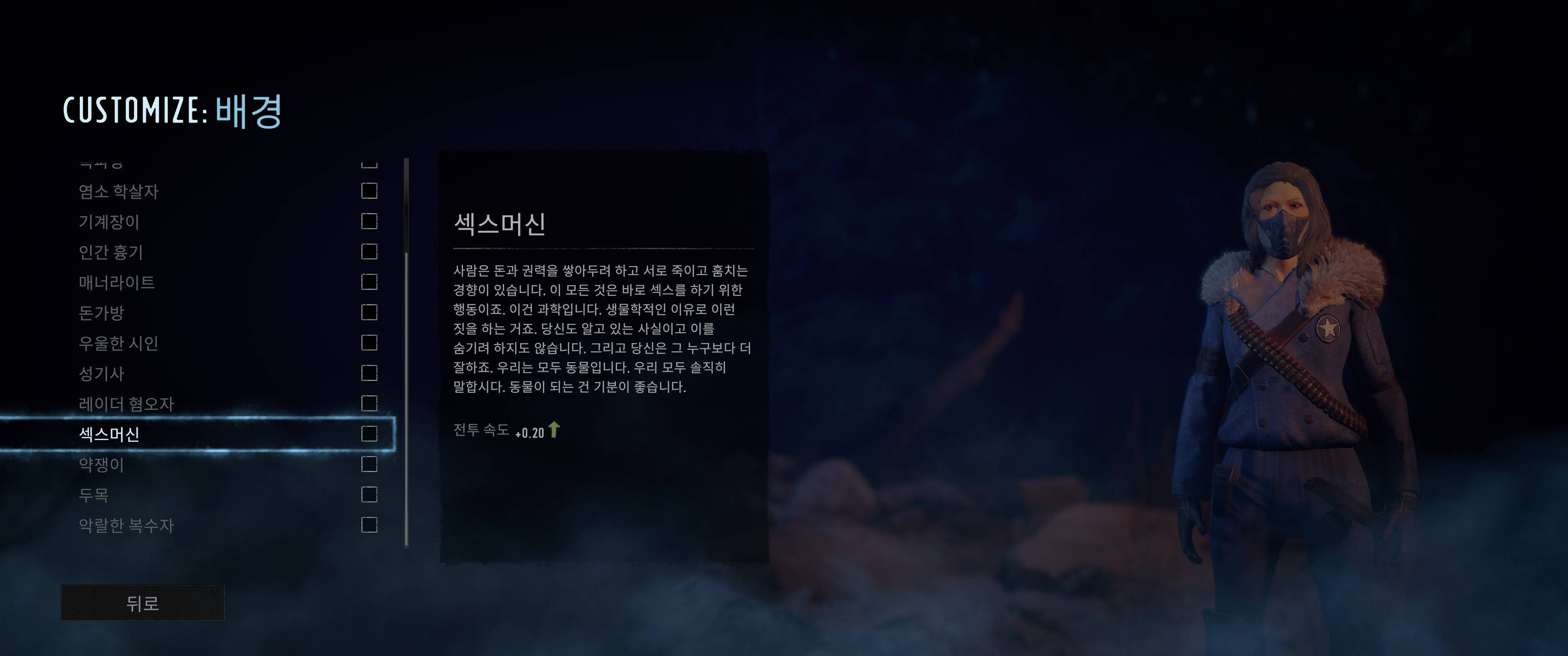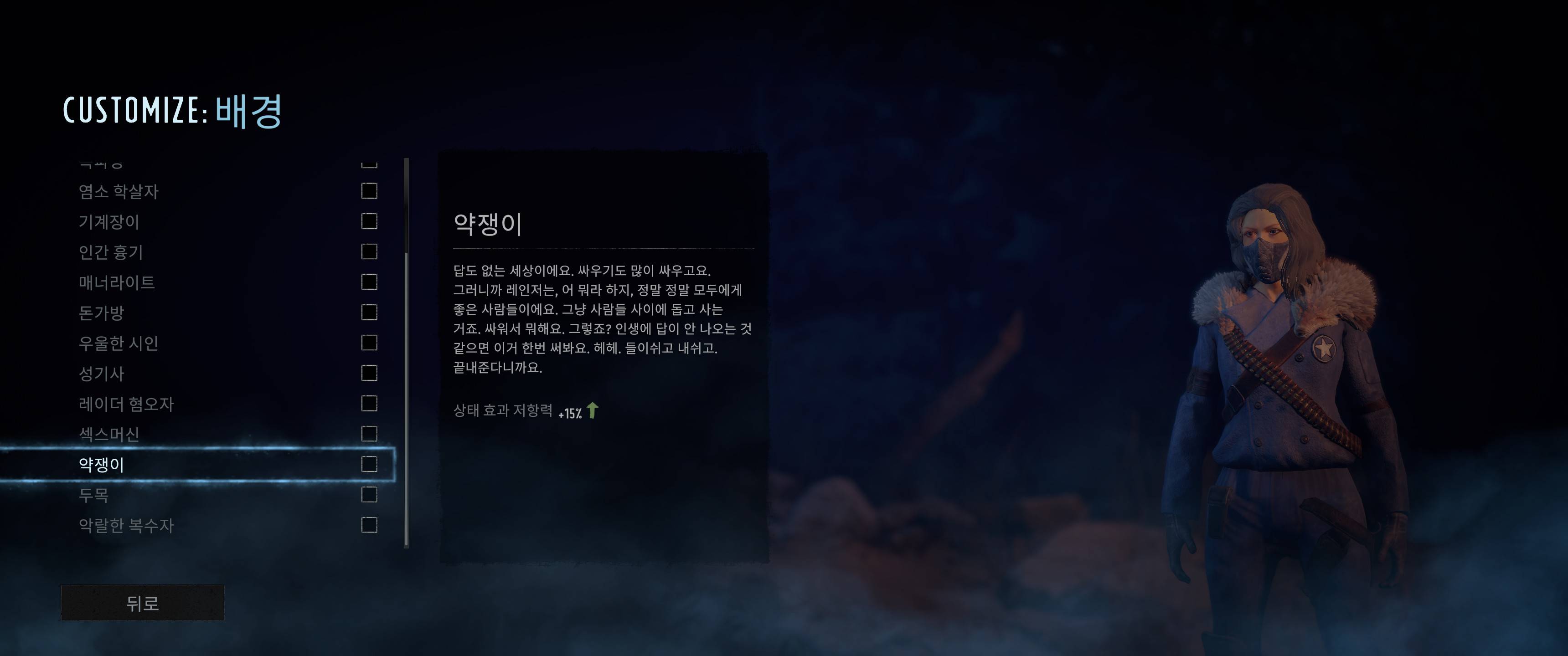 캐릭터 설정 배경에 일부 능력치도 배정되는데 이런 식임 ㅋㅋㅋㅋ