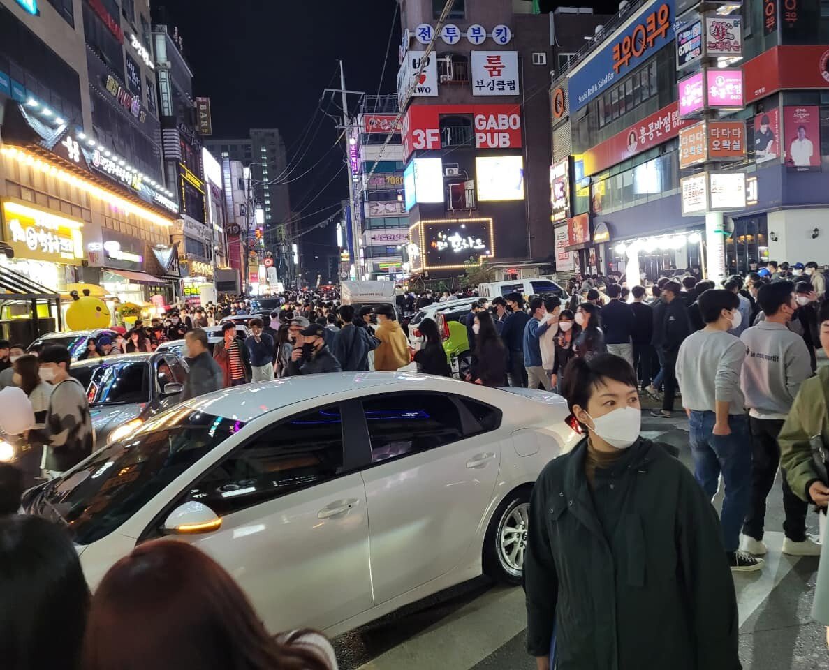 한꺼번에 쏟아져 나와 거리는 인산인해입니다.