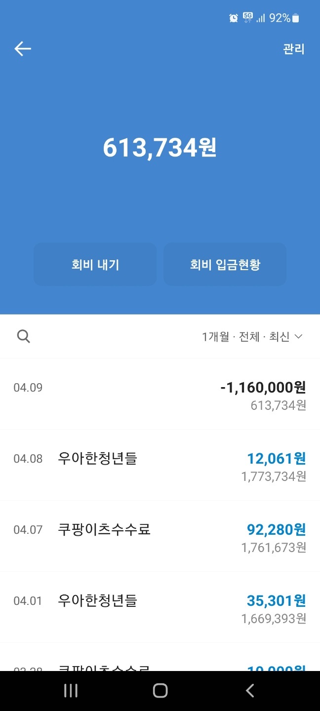 잠깐하는거치곤 많이버네