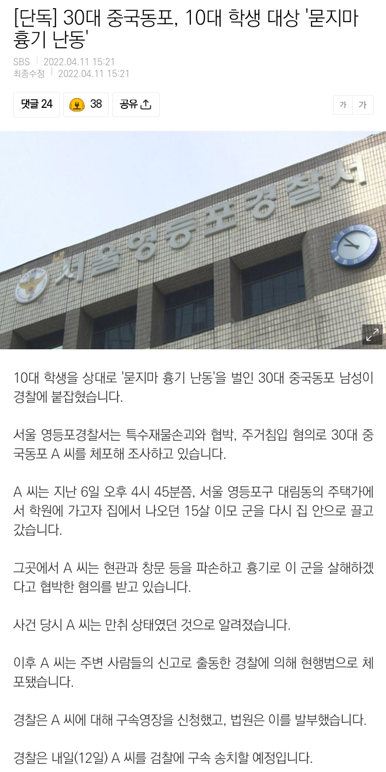 근데 요즘 강남 서초 고급아파트에도 짱깨늘어나고있어서