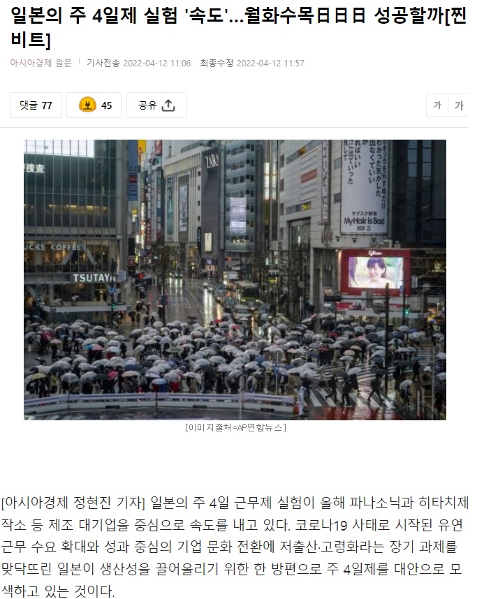 일본은 주4일제 하면 나라망한다는 얘긴 없나?