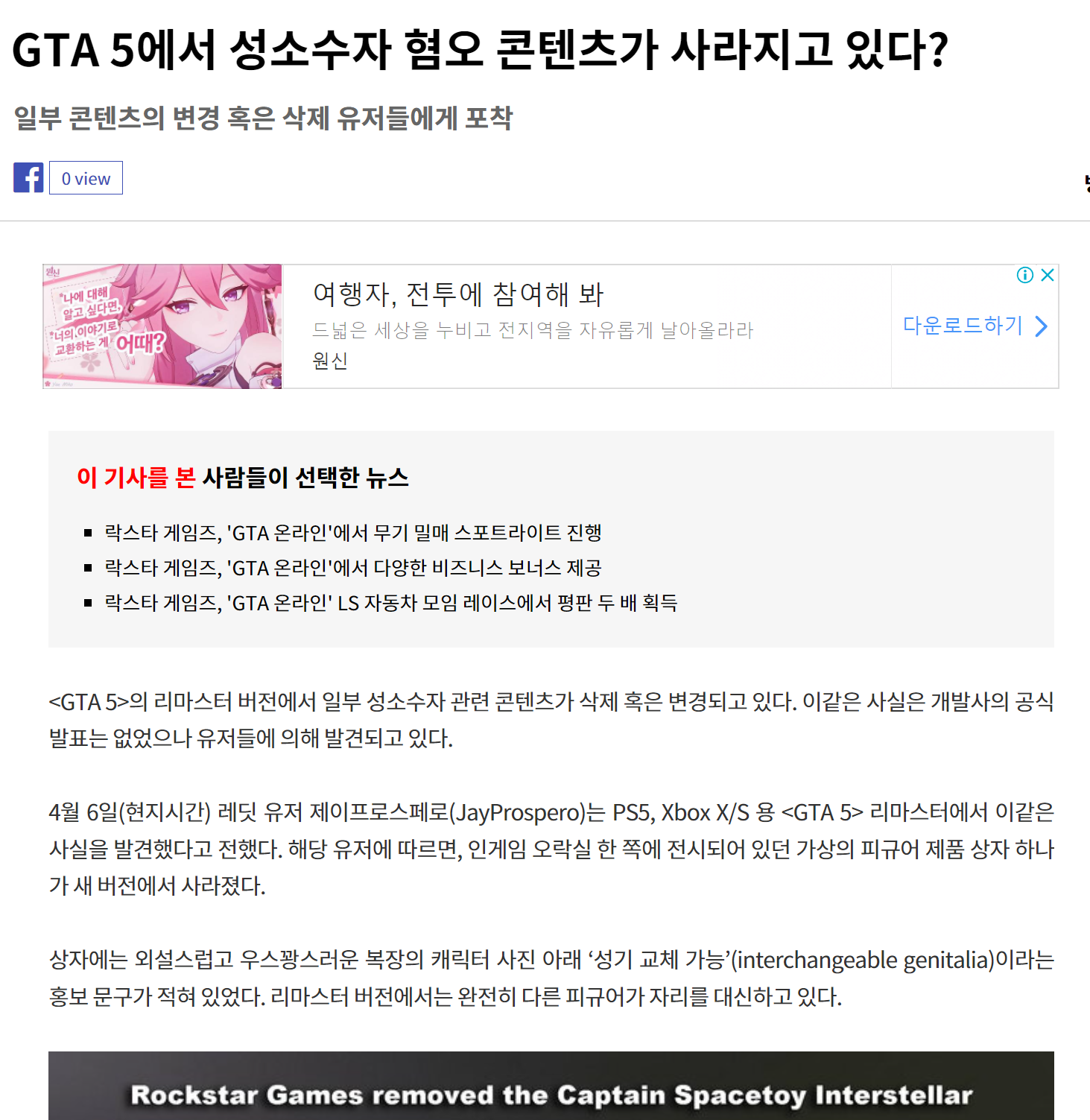 페미던 정치가던 기업가던 뭐든 다 베베 꼬고 쳐패는 게 GTA의 참맛인데