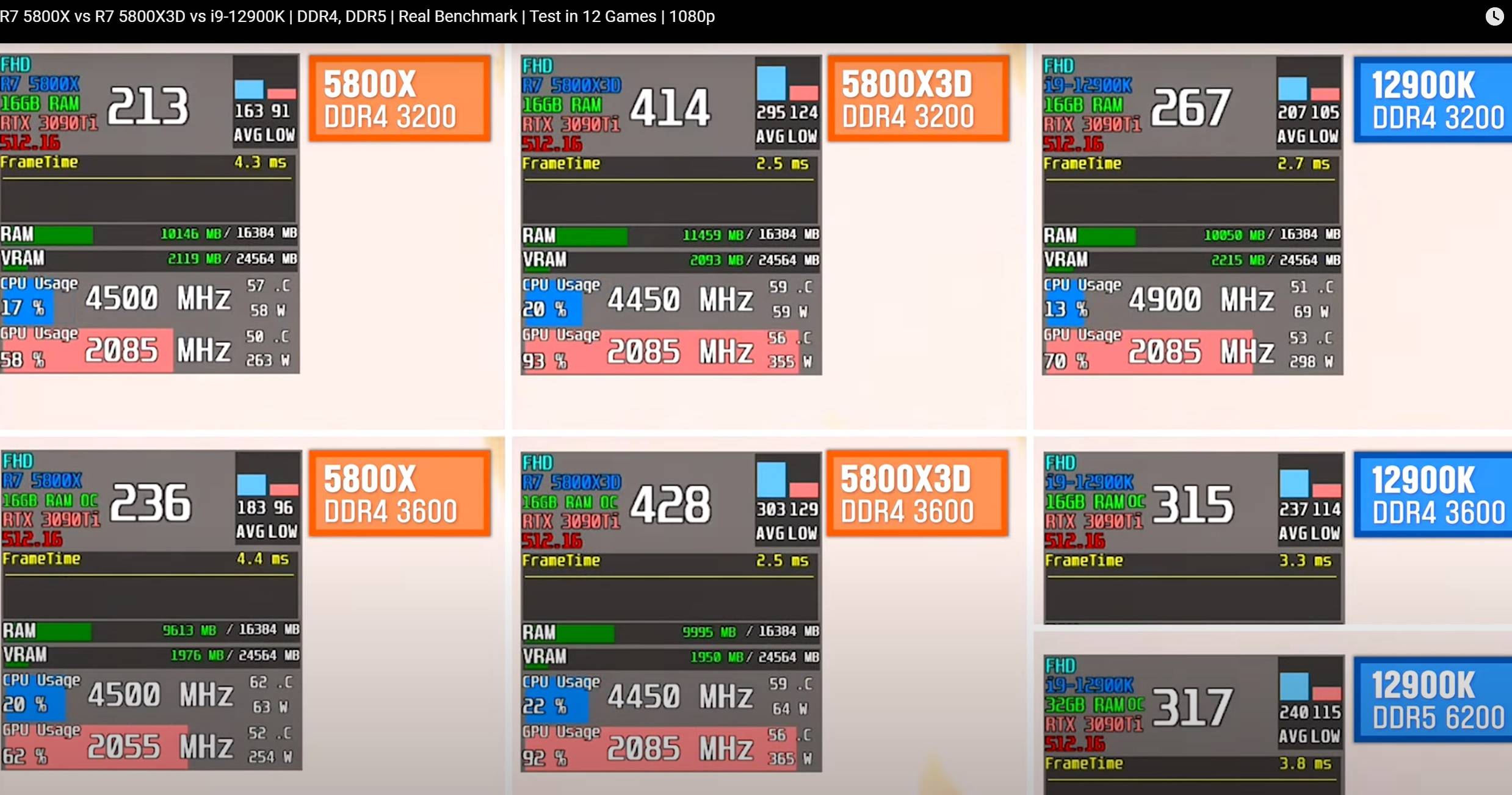 게임마다 12900K랑 누가 좋다 차이가 있는데