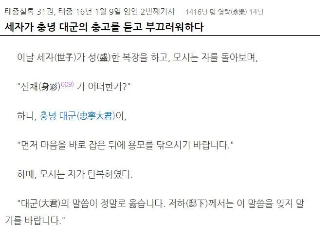 동생의 재능을 알아보고 세자자리 양보하는 양녕 & 겸손한 충녕이 아니고