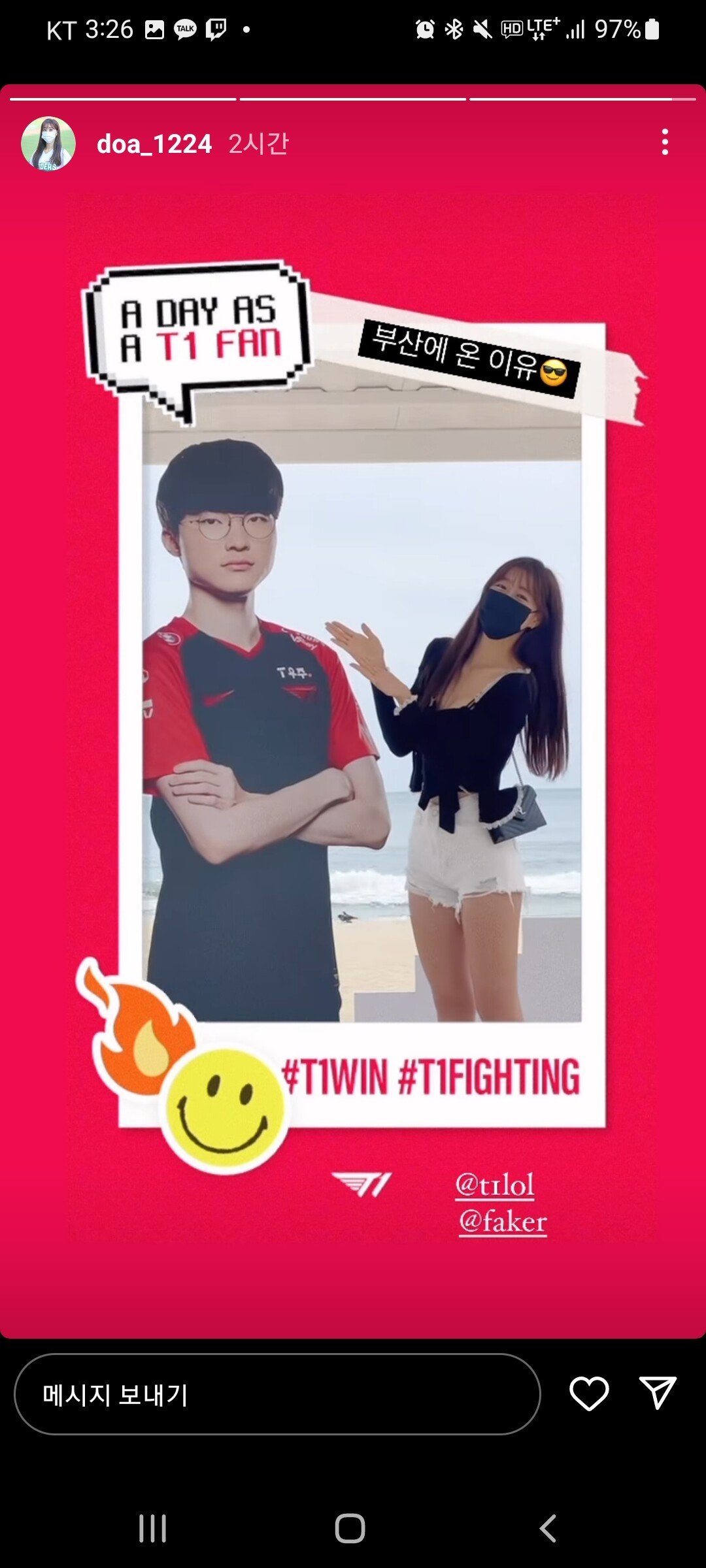 페이커 보러 시즌 중인데 부산 감 ㅋ