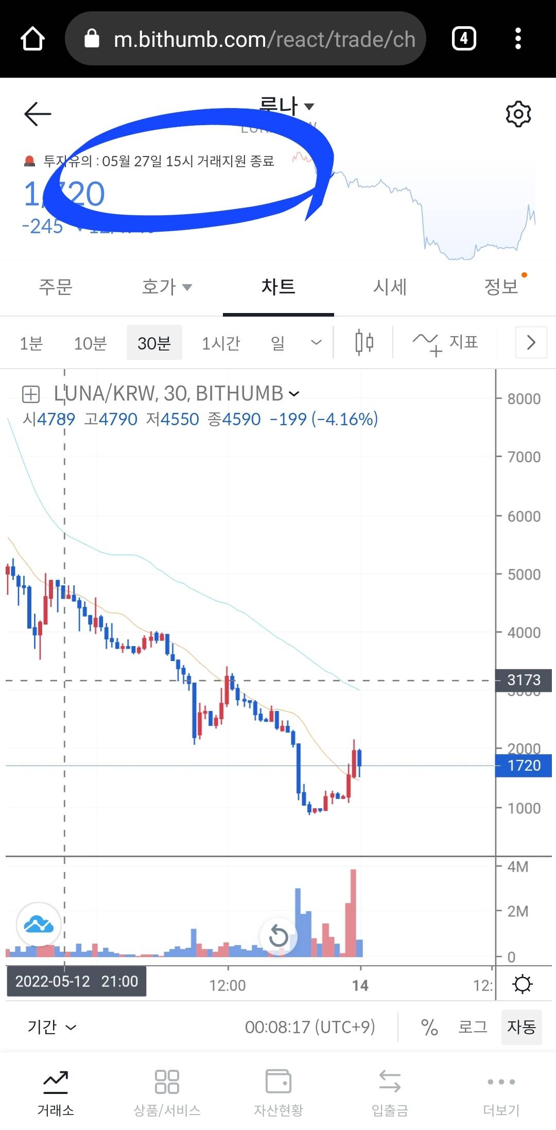 타 코인거래입금 막아놓고 3,4천원에서 자전거래하다가 몇시간전에 상폐빔쳐맞고 900원까지 떡락했다가 역시나 폭탄돌리기 투전판벌어짐
