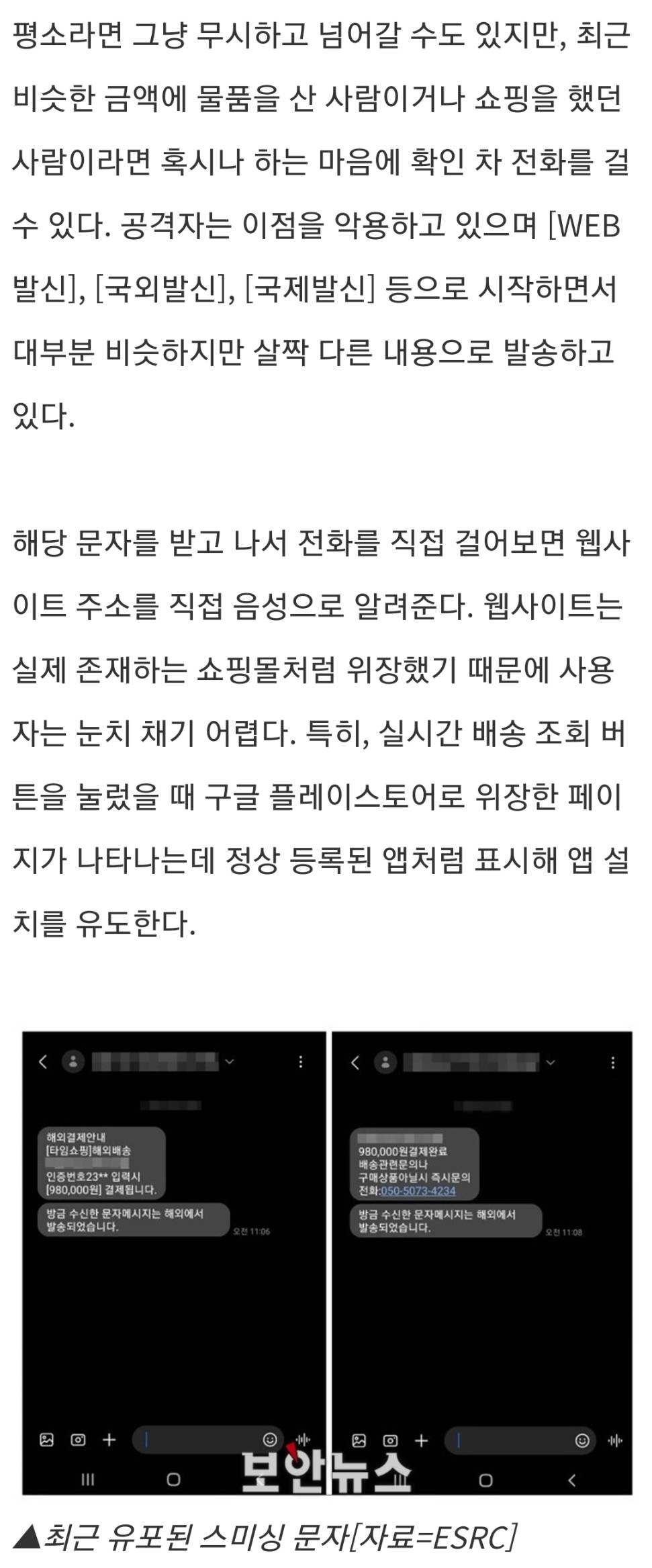요렇게 전화유도해서 악성앱 설치하게 만듬