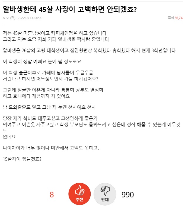 고백을 받으면 고민을 좀 해보겠지만 고백을 하는건 주책이다...싶다 이해는 한다만