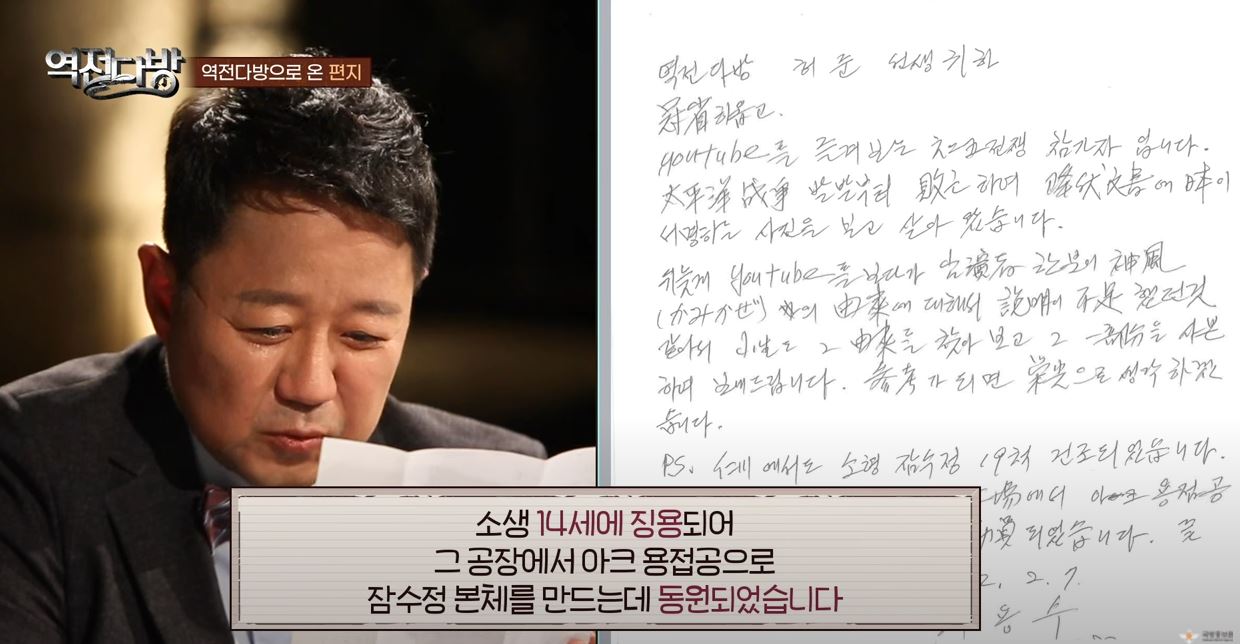 14살에 강제징용되어 잠수정 만드는 일을 하셨다고 함ㅠㅠ